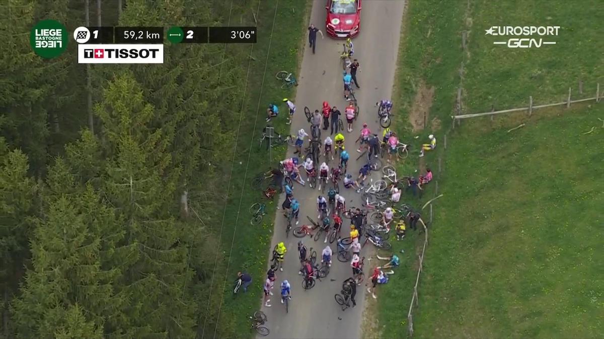 Nello stesso incidente è stato coinvolto anche il campione del mondo Julian Alaphilippe, che ha riportato la frattura di due costole e una scapola oltre ad un emopneumotorace.