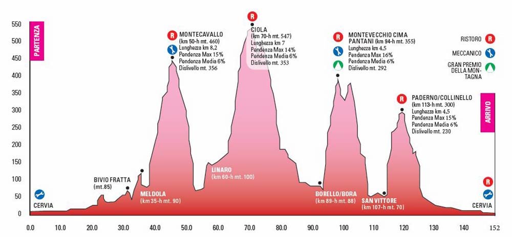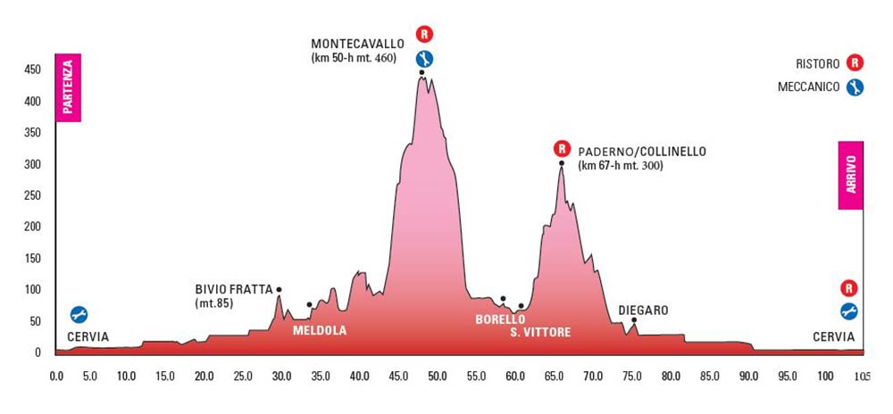 Le salite sono solo due (Monte Cavallo e Collinello) e per questo anche alimentarsi sarà meno complicato.
