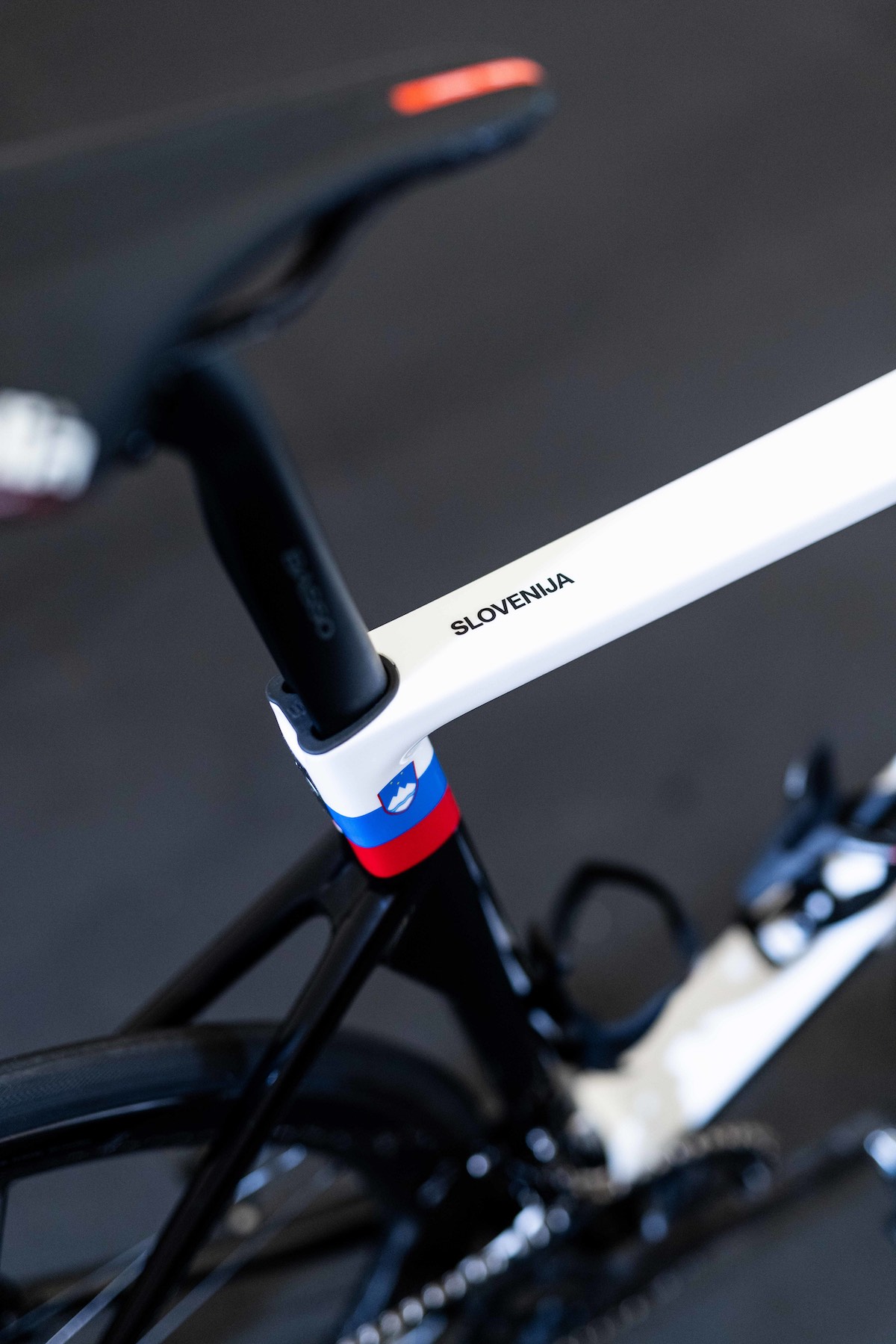 Il fondo nero crea il giusto contrasto e mette in risalto i colori della bandiera slovena (bianco, blu e rosso) posti ai lati del telaio in prossimità del nodo di sella e del tubo di sterzo, mentre sull'orizzontale è presente il dettaglio “Slovenija”.