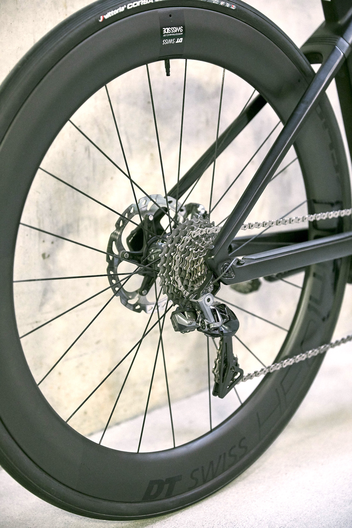 Nella versione top di gamma, montata con comandi Shimano Ultegra Di2, cassetta e cambio Dura Ace Di2 e ruote in carbonio DT Swiss HEC 1400 SPLINE DB 47 specifiche per e-bike, il peso dichiarato è inferiore ai 15 chilogrammi.