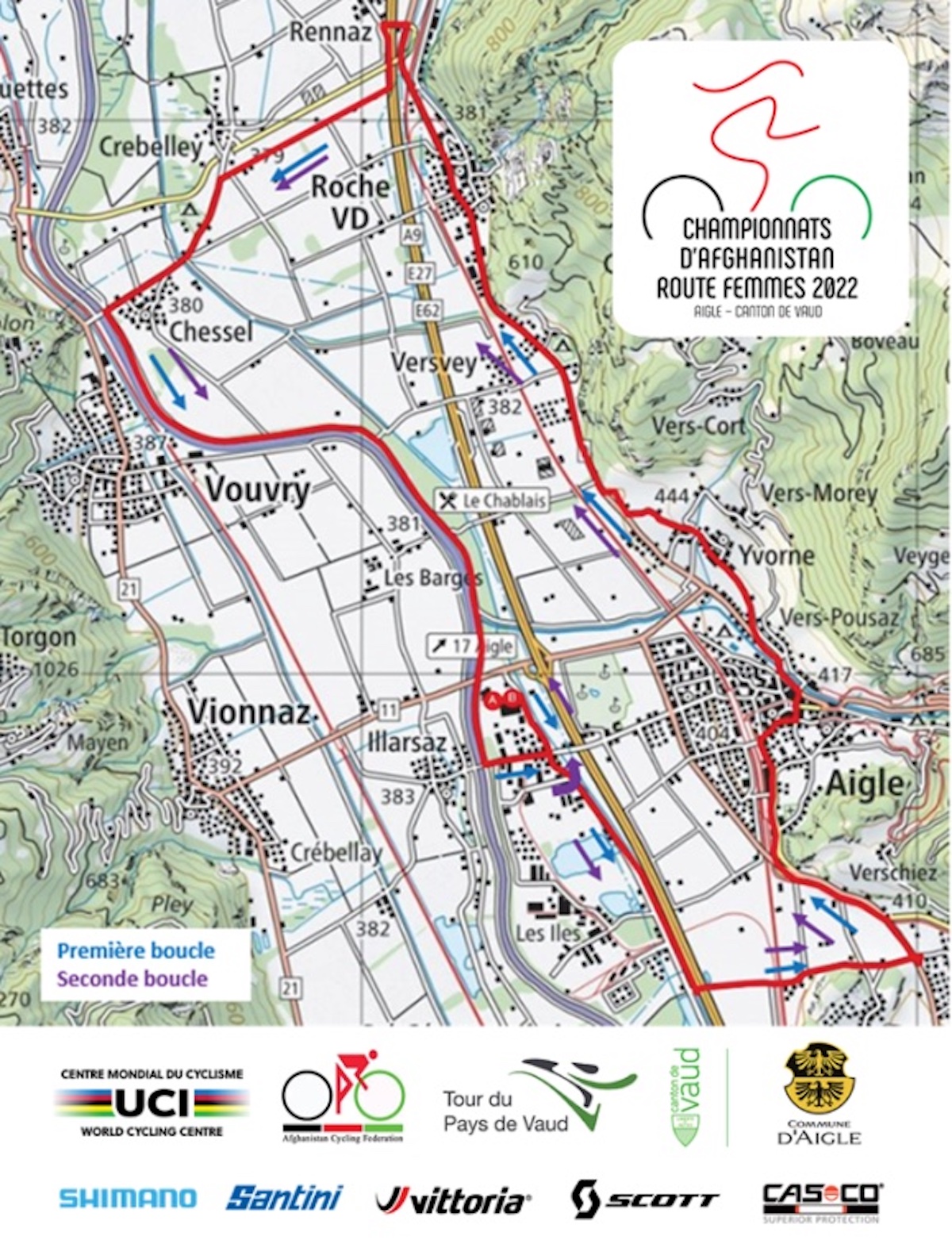 57 km e 144 metri di dislivello con due giri del circuito (28,5 km e 72 m di dislivello) che si snoda tra gli abitati di Aigle, Yvorne, Rennaz and Vouvry.