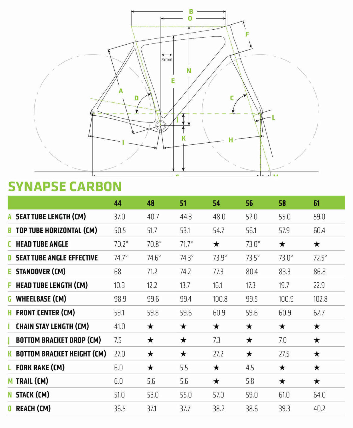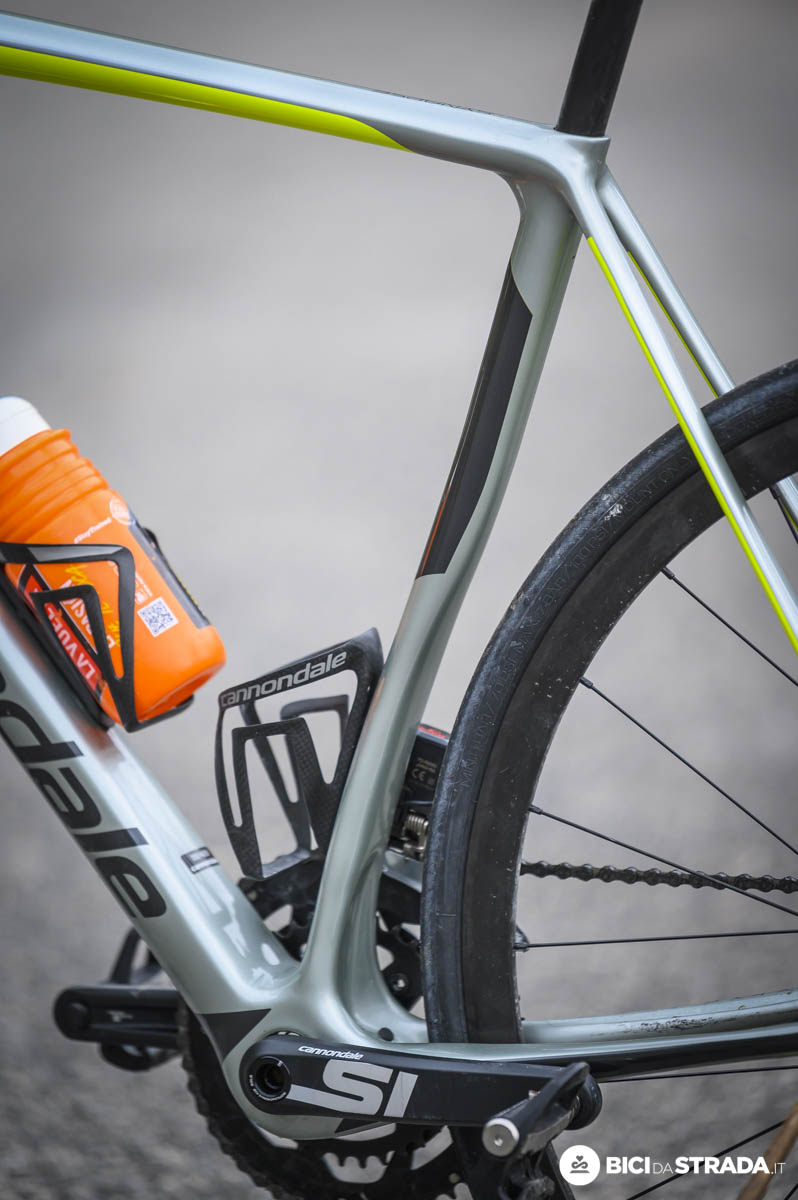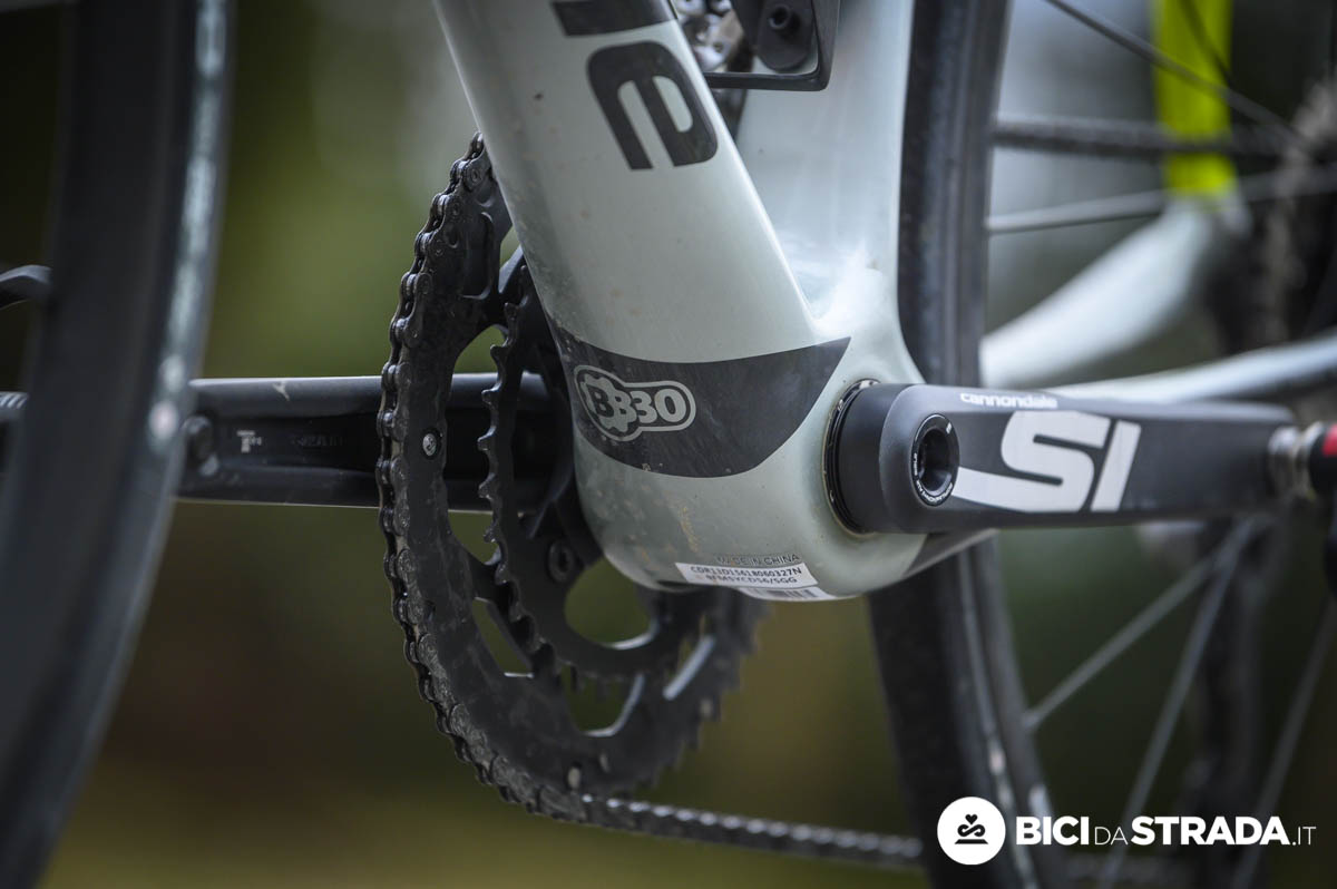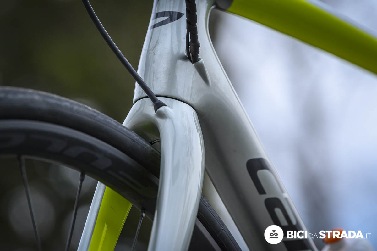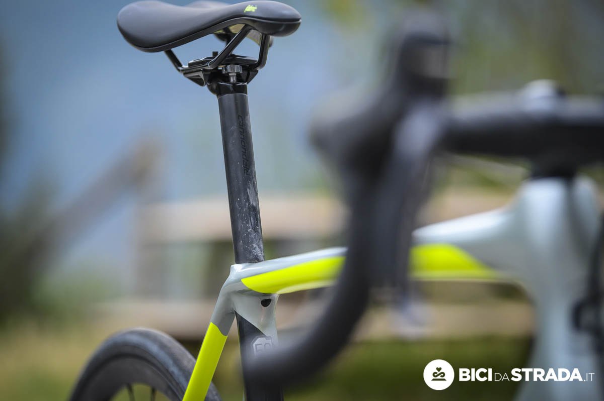 Per favorire l’indole racing Cannondale ha utilizzato un angolo di sterzo di 73° e una forcella con rake di 45 mm (in tg 56), un tubo piantone da 73,5° e un carro da 41 cm e, vista la possibilità di montare gomme fino a 32 mm di sezione, è una misura di tutto rispetto.