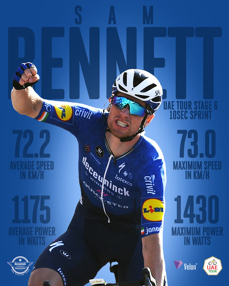 A proposito di questa volata, non si possono non spendere due parole sui numeri di Sam Bennet, che proprio con questo sprint ha conquistato la sua cinquantesima vittoria in carriera, davanti al nostro Elia Viviani.