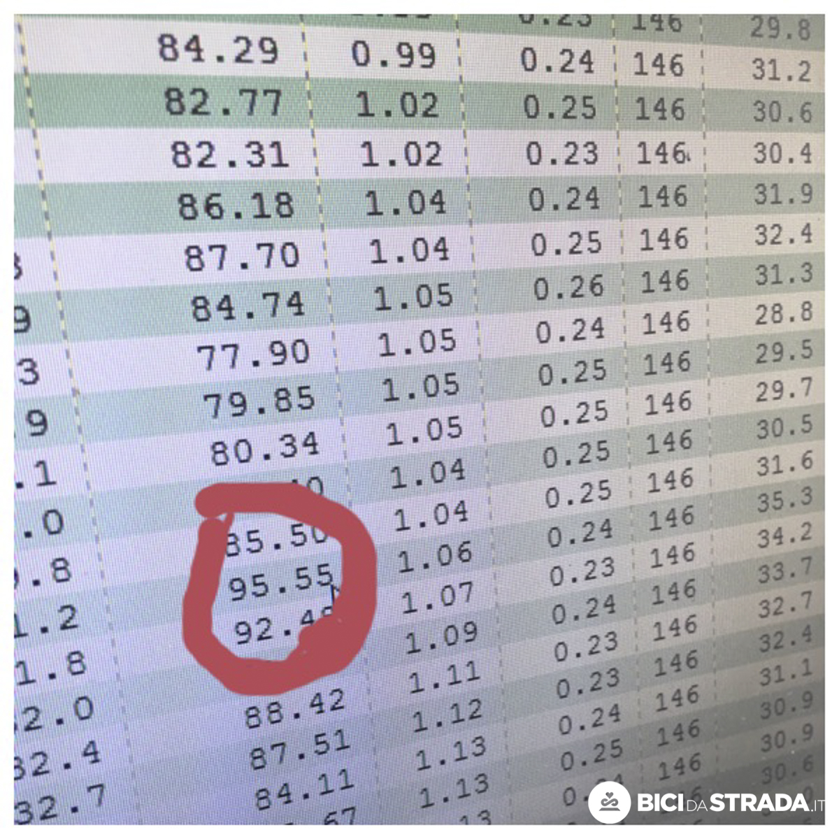 Tra i grandi campioni di cui si conoscono i valori, Greg Lemond aveva 94, Miguel Indurain 88, Chris Froome 88.