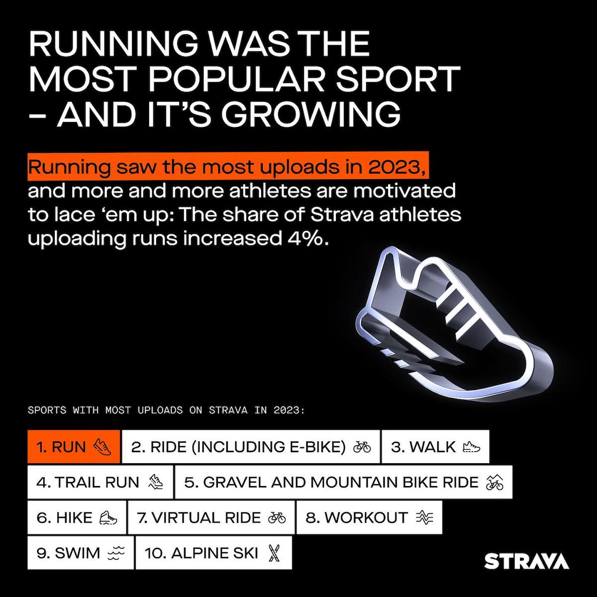 La corsa è stato lo sport più caricato su Strava nel 2023, seguito dal ciclismo (e-bike comprese).