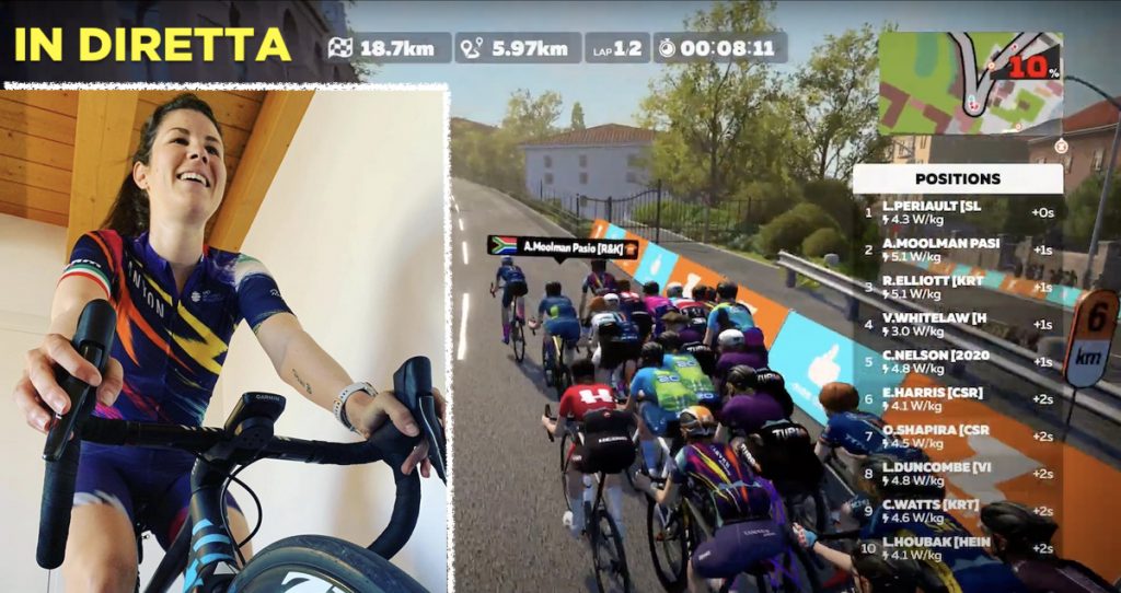 Insieme alle compagne del Team Canyon//Sram Racing si cimenta spesso anche nelle gare su Zwift, in particolare modo in questo periodo di lockdown.