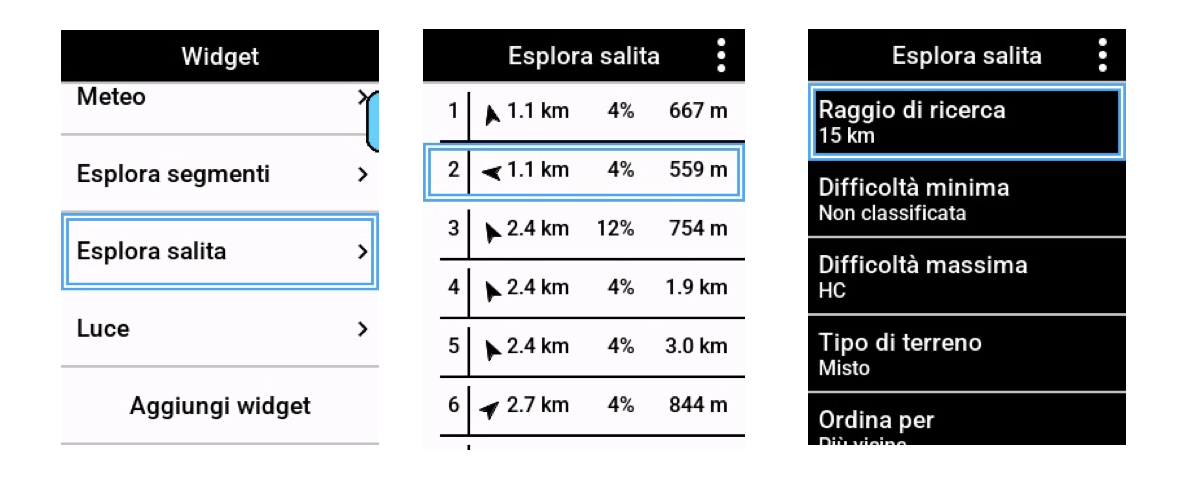 Il widget “Esplora Salita” è un complemento della funzione Garmin Climb Pro.