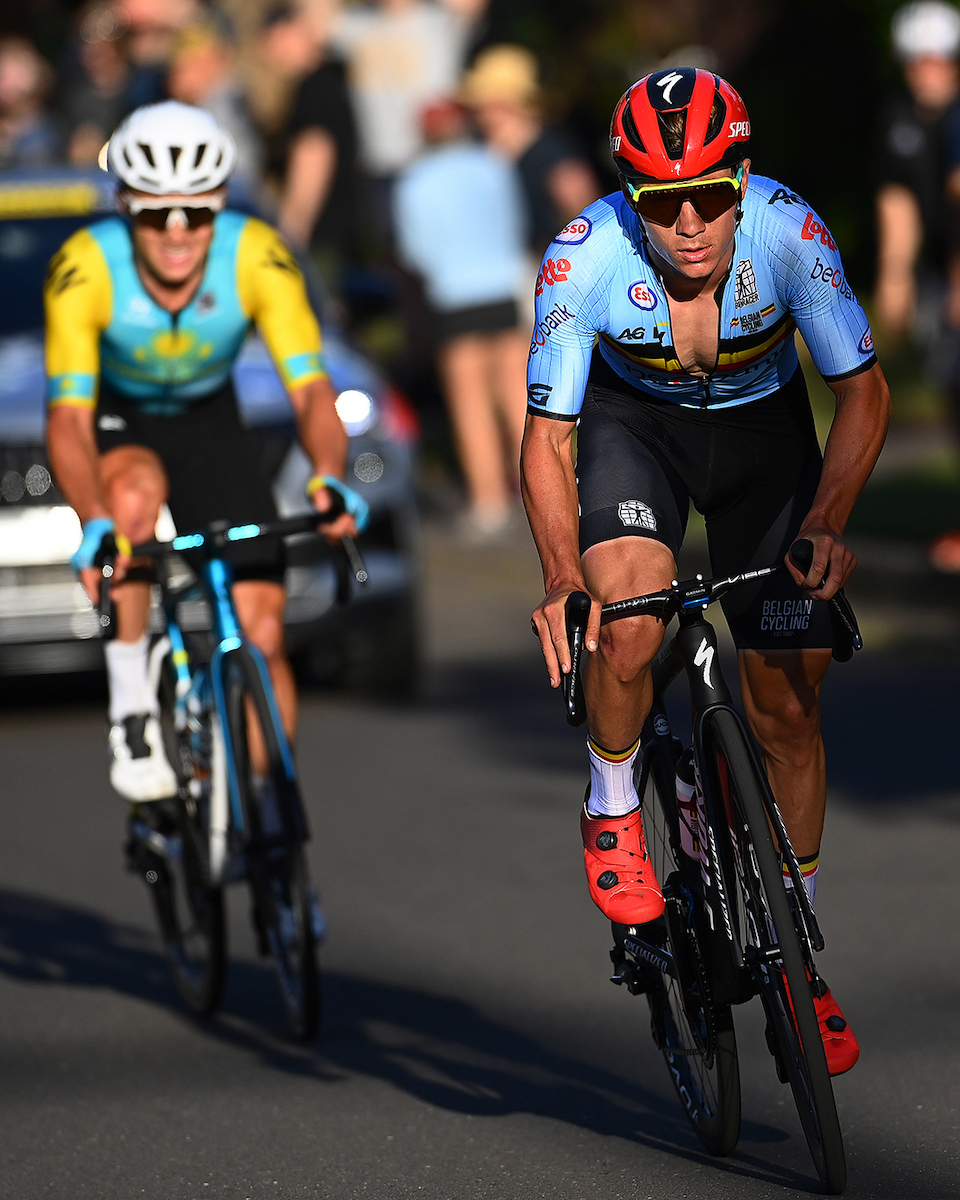 L’unico che era riuscito a seguire Evenepoel era stato Lutsenko, che però è stato staccato da davanti, di passo, lungo il penultimo passaggio sulla salita di Mt. Pleasant.