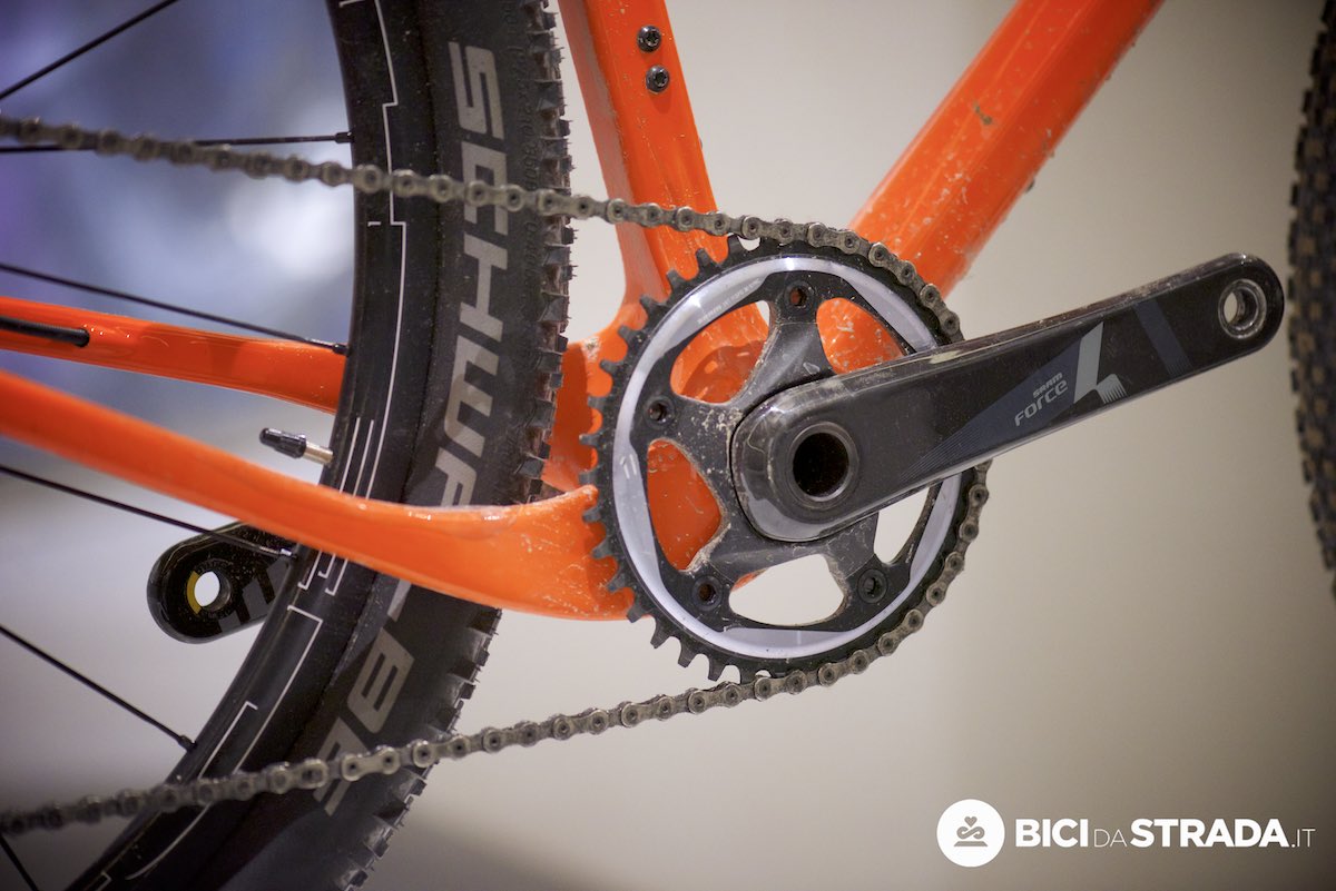 Nel caso di una trasmissione 1x11 troviamo combinazioni con corona singola che va dalla misura 36 denti fino alla 44 denti e pacco pignoni da 11-34, 11-36, 11-40 o, grazie alle versioni AXS di Sram, anche 10-50.
