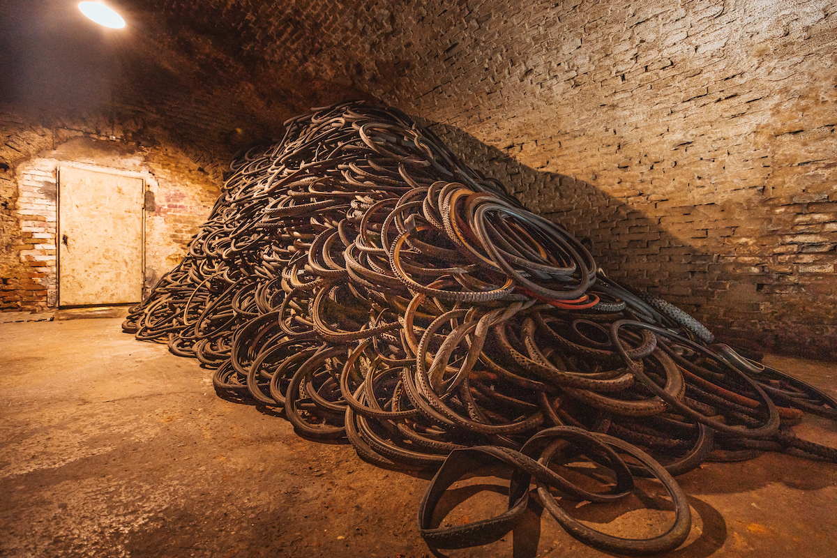 Ingo Ruhland ha raccolto gomme da bici usate per 23 anni nello scantinato sotto il suo omonimo negozio di biciclette a Freising, in Germania.