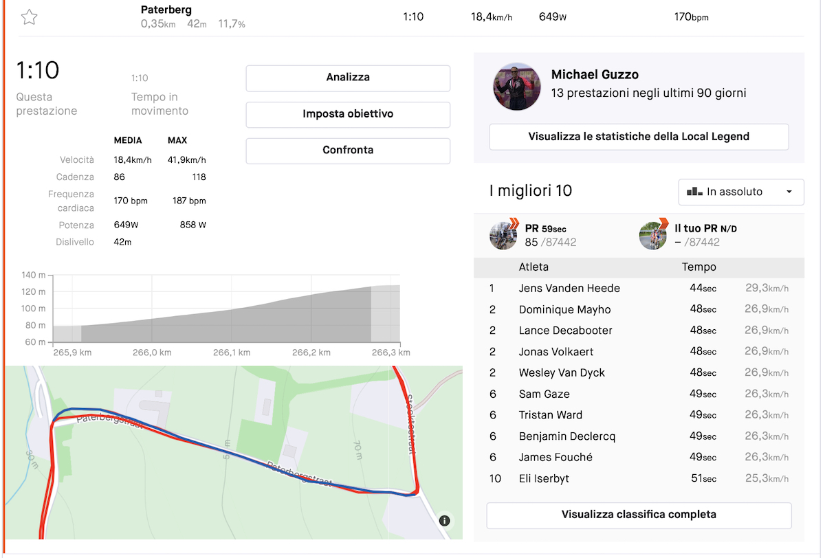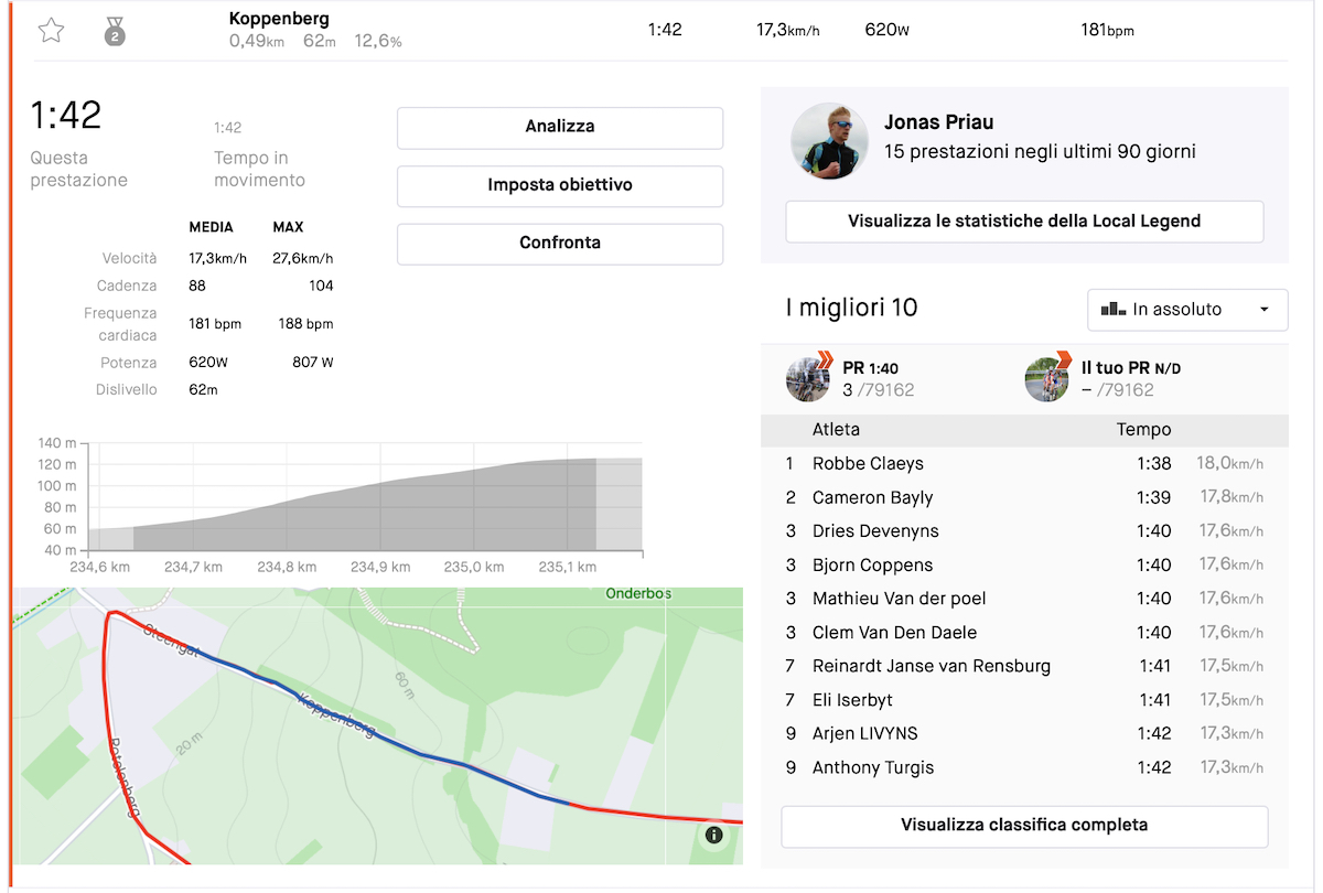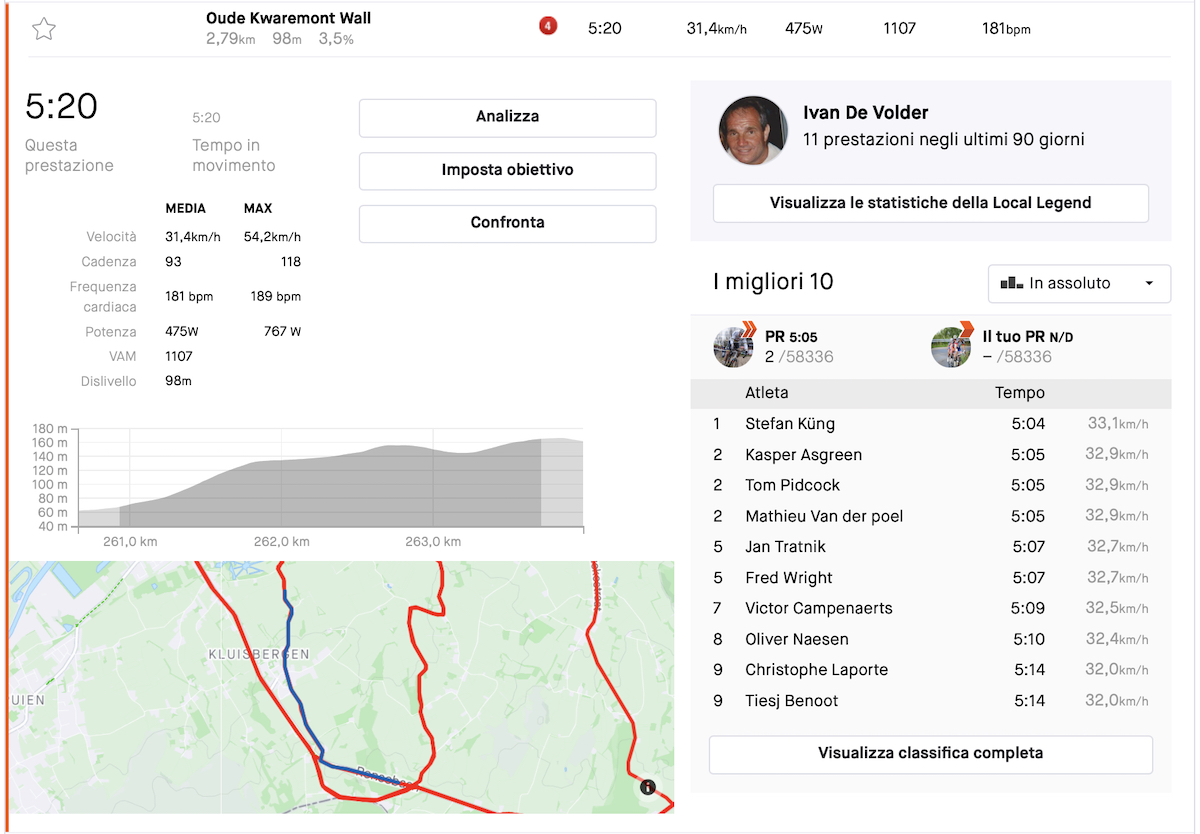 5:20" il tempo impiegato da VdP (rispetto ai 5:05" del penultimo passaggio), con una potenza media di 475 watt.