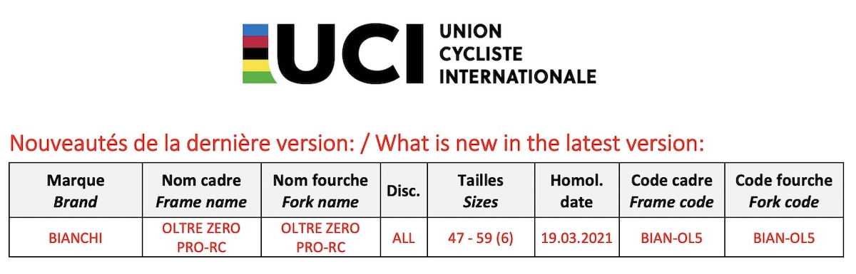 - Come mai la lista dei modelli omologati UCI riporta il nome Oltre Zero Pro RC, diverso quindi rispetto ai tre allestimenti presentati il 18 ottobre (Oltre RC, Oltre Pro e Oltre)?