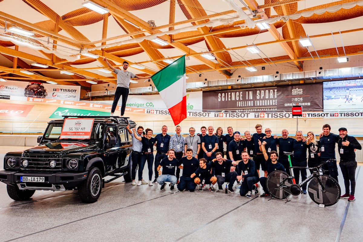 Indurain con la sua Pinarello Espada lo conservo come un francobollo stampato nella memoria, ma la lezione di Ganna va oltre la distanza: 56,792 km. Sgretolato il precedente primato del suo ingegnere-lepre (o pacer chiamatelo come volete) Dan Bigham che lo scorso 19 agosto aveva fatto registrate 55,548 km.