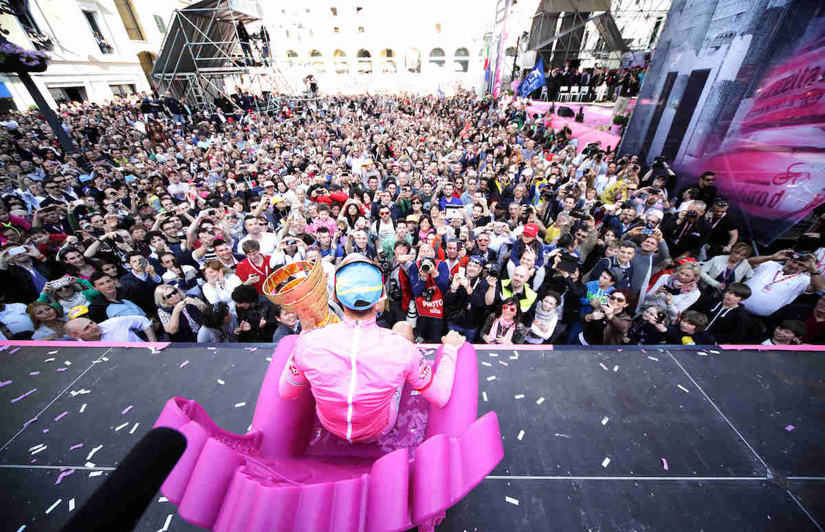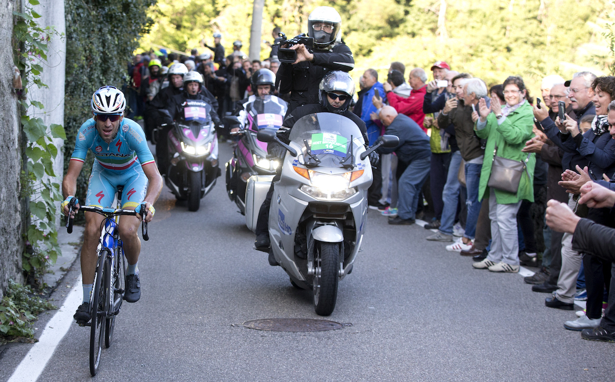 4 ottobre 2015, Giro di Lombardia. Sul gradino più alto del podio con la figlia Emma Vittoria. Foto: Ansa/Angelo Carconi