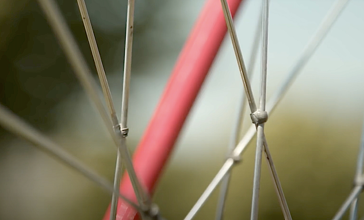 Piuttosto che addentrarci nella costruzione della ruota (basata su raggi in acciaio e mozzi e cerchi in lega leggera), dal video si nota un particolare molto in uso in quegli anni.