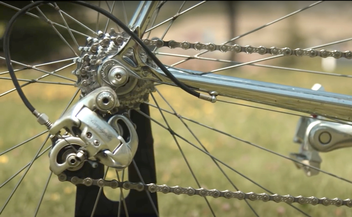 Questa foto mostra il cambio Campagnolo Super Record del 1980 e un mozzo con cassetta a 8v che sarebbe comparso all'inizio degli Anni Novanta. Chi lo aveva notato?