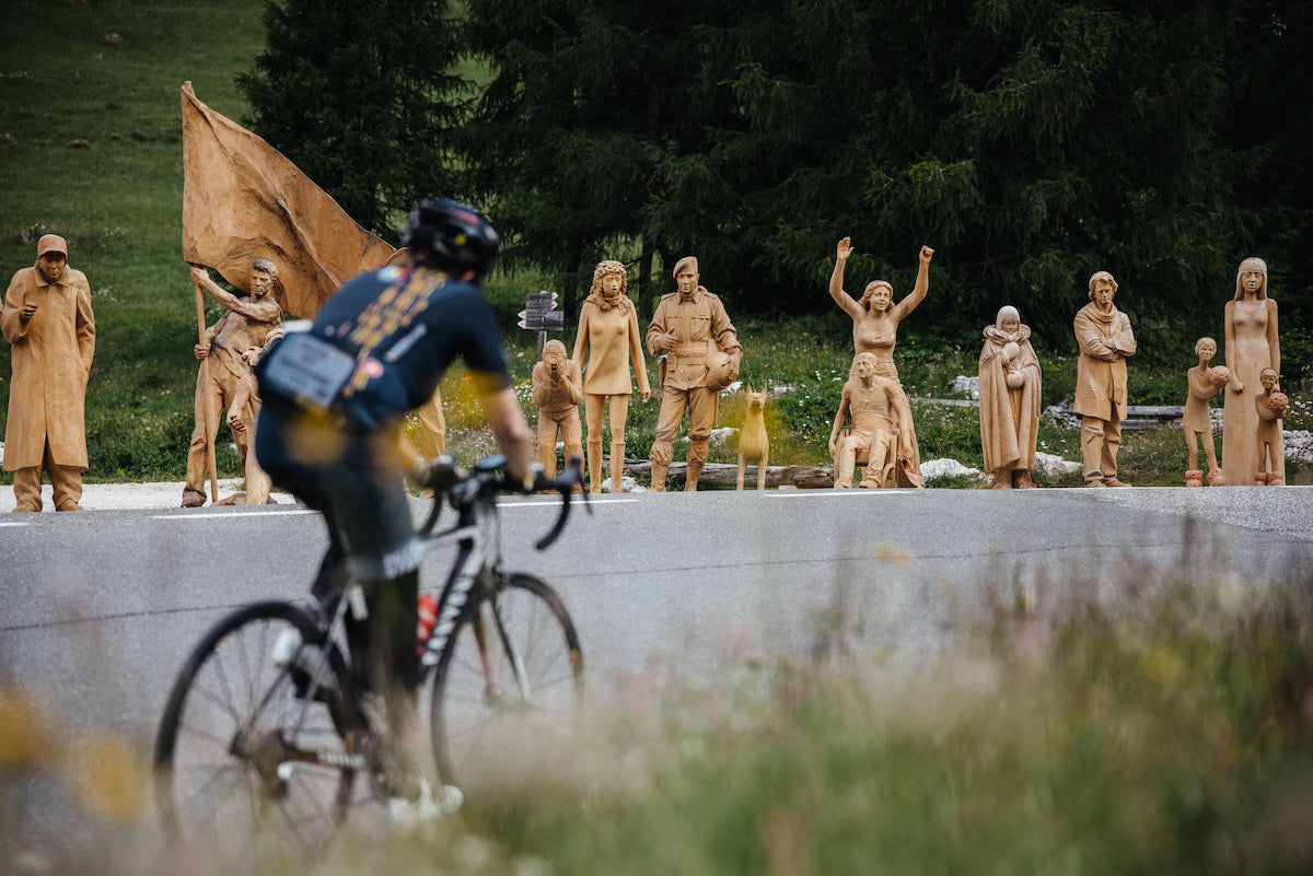 “Cos’è l’arte? È un sentimento che ci apre e ci smuove. Non si può non amare l’arte, significherebbe non amare la vita. Quando uomo e montagna si incontrano nascono dialoghi silenziosi. O forse socratici. Questa è arte. Che sia una buona pedalata artistica, incontrando noi stessi tramite gli altri, pedalando su e giù per i passi con un sorriso, sempre”.