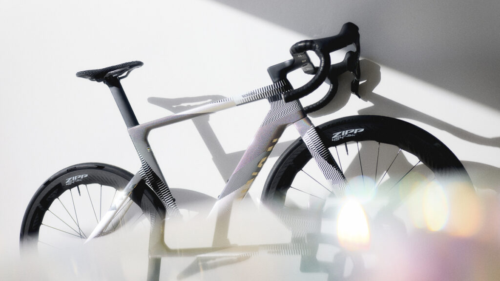 La collezione Fabrio è caratterizzata da pigmenti speciali e decalcomanie iridescenti che cambiano aspetto quando la bici riflette la luce. E’ declinata in 3 differenti proposte: Gold Dust, Milky Way, Dark Matter.