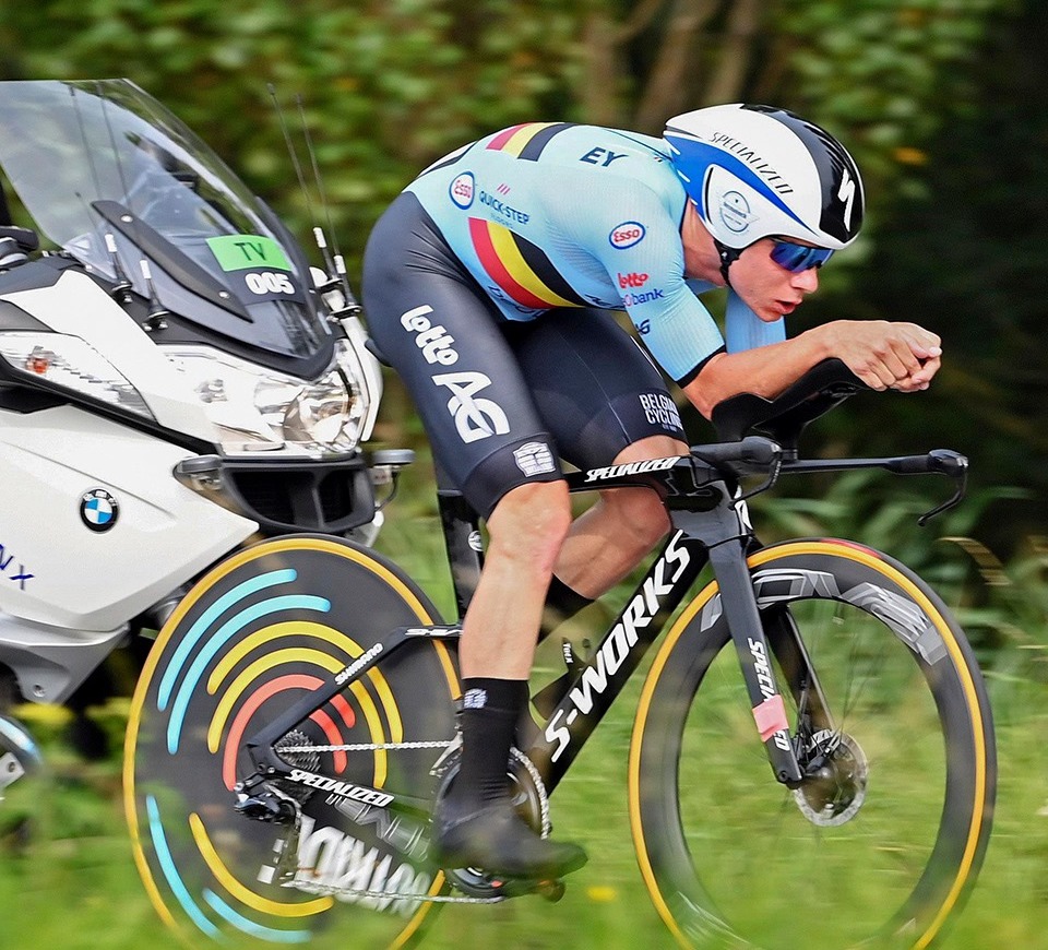 Van Aert è partito fortissimo, facendo segnare al primo intertempo (dopo 13,8 km) il miglior tempo con una media di 54 km/h.