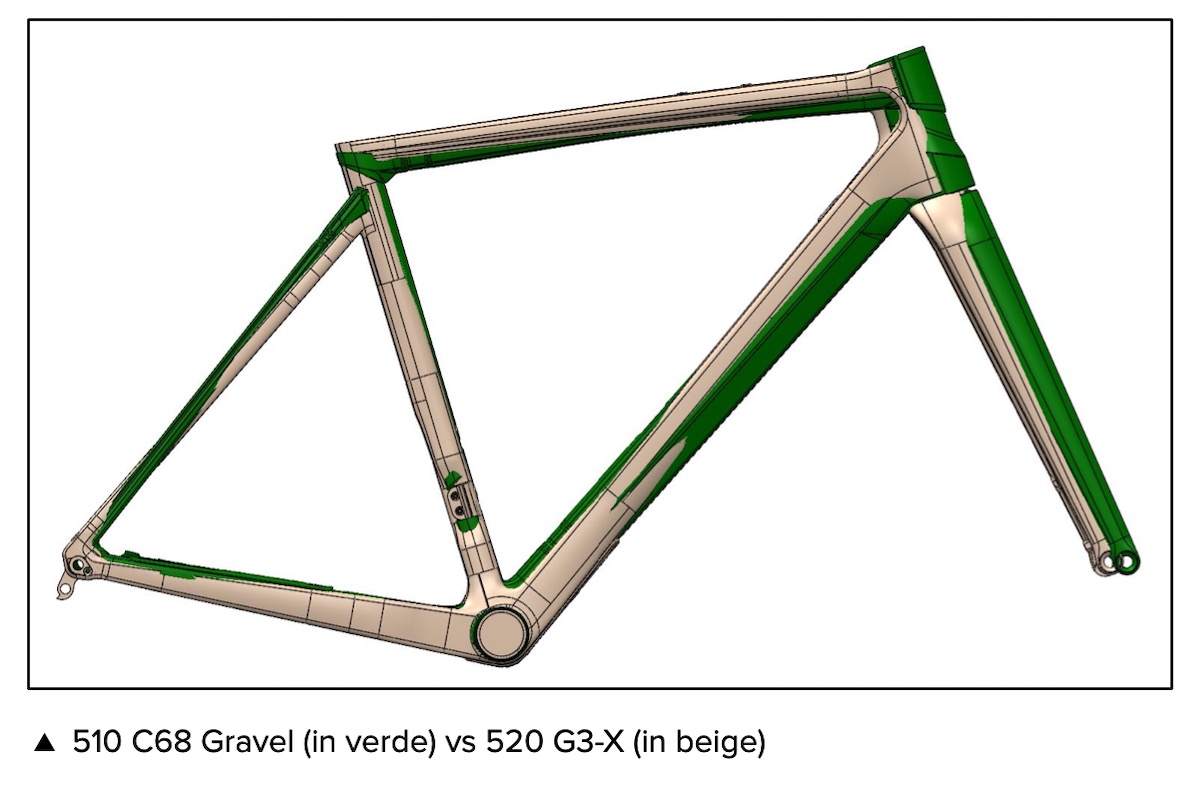 Il telaio della nuova Colnago C68 Gravel, come quello delle altre bici della famiglia C68, non è monoscocca ma realizzato con più parti modulari incollate tra loro.