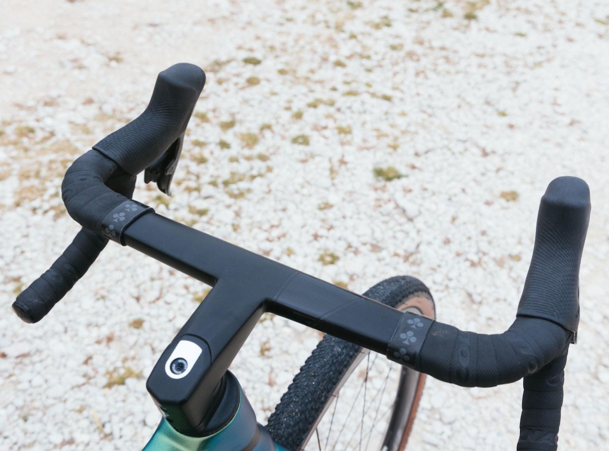 Il telaio della C68 Gravel è completato dal manubrio integrato in fibra di carbonio CC.01 Wide, che deriva dalla versione stradale, ma presenta un flare più accentuato e reach e drop rivisti per l’uso off-road.