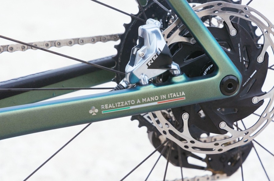 Il passaggio ruota massimo consente di montare gomme fino a 42 mm (larghezza nominale), cioè non particolarmente larghe per gli standard attuali, ma in linea con le gravel racing che si trovano oggi sul mercato. E’ evidente che la destinazione d’uso non è il gravel “estremo”.