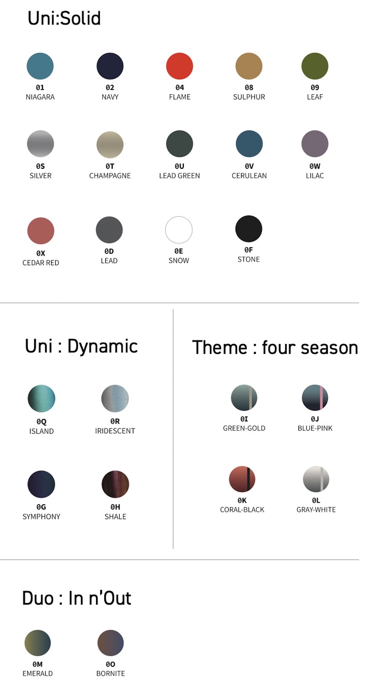 È possibile richiedere, inoltre, la verniciatura personalizzata attraverso il configuratore MyDare. Qui sotto tutte le tonalità.