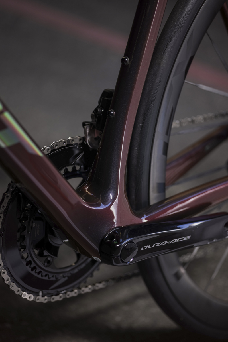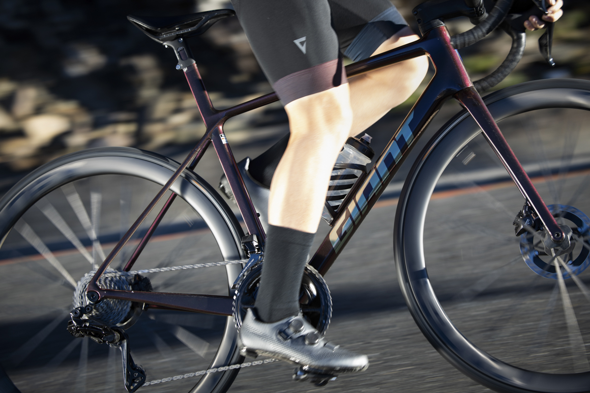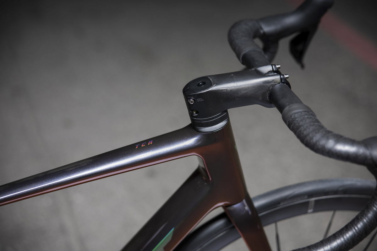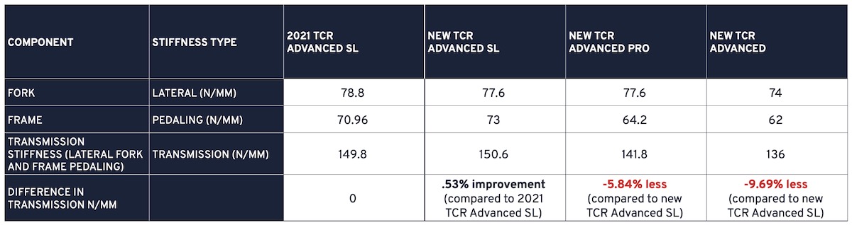 La maggior parte dei guadagni in termini di rigidità provengono dalle sezioni modificate del tubo sterzo, del tubo obliquo e della scatola del movimento centrale. Ma la nuova TCR 2024 in versione SL è anche più leggera e più capace di assorbire le vibrazioni.