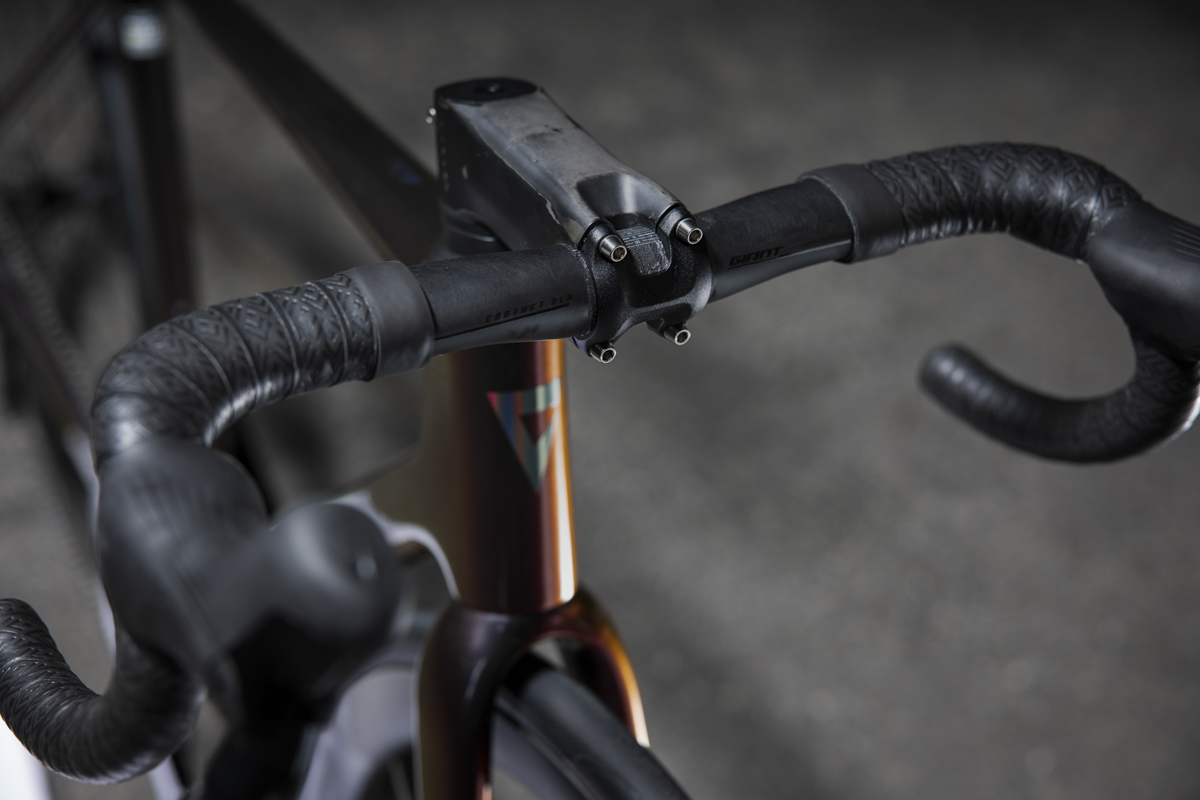 Rispetto alla maggior parte dei competitor, Giant ha realizzato il passaggio interno dei cavi rinunciando al cockpit integrato di serie. Questa scelta sacrifica forse qualche grammo, ma permette una maggiore praticità e possibilità di personalizzazione. Si può, infatti, cambiare la misura del solo attacco o del solo manubrio, oppure semplicemente modificare l’inclinazione del manubrio stesso.