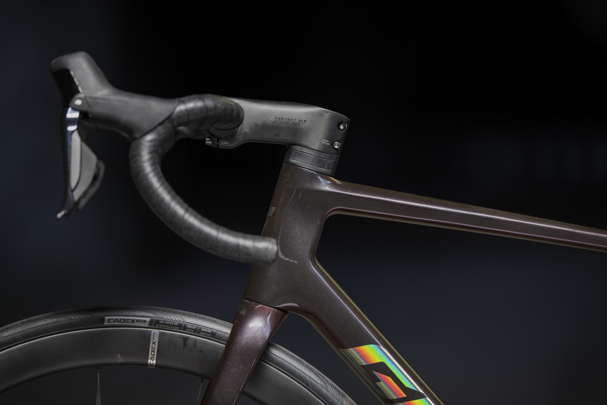 La testa ora ha una forma a D, con relativi distanziali che, oltre a migliorare l'aerodinamica, consentono anche il passaggio interno dei cavi o dei fili del freno e del cambio attraverso il manubrio, l'attacco manubrio e il telaio.