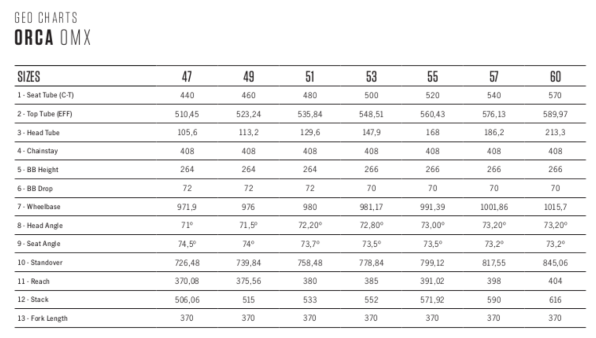 La nuova Orbea Orca 2020 è disponibile in 7 misure (dalla 47 alla 60) e 5 diversi allestimenti.