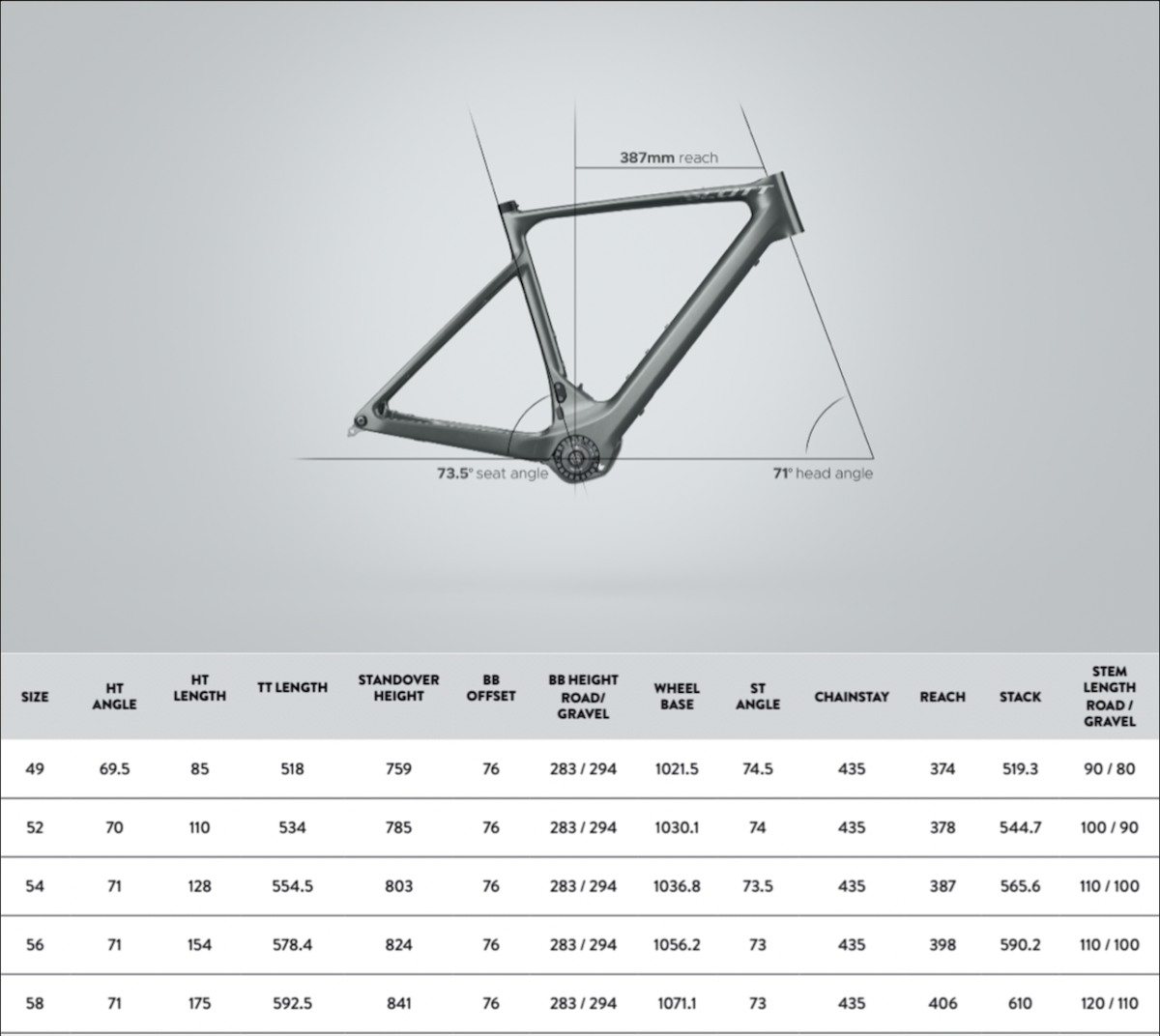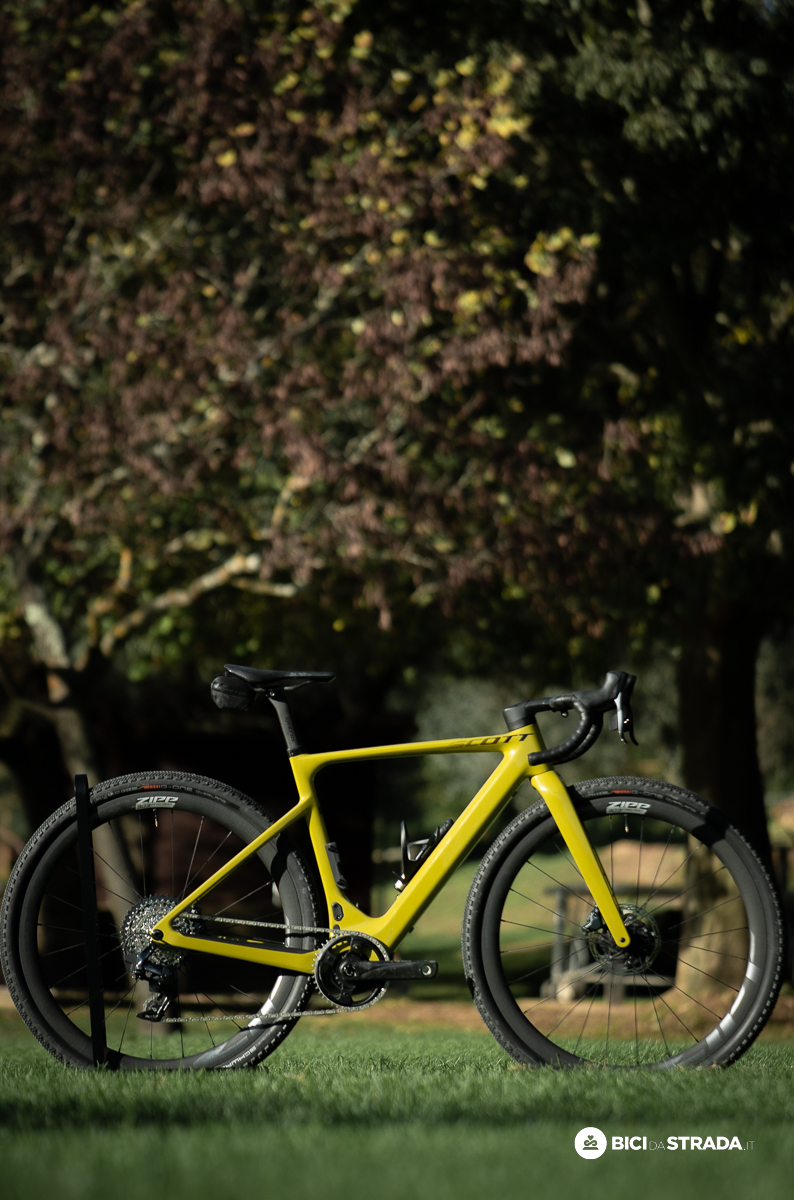 La base di partenza, lo abbiamo già detto, è quella della Addict Gravel, come dimostra un'impostazione geometrica quasi identica.