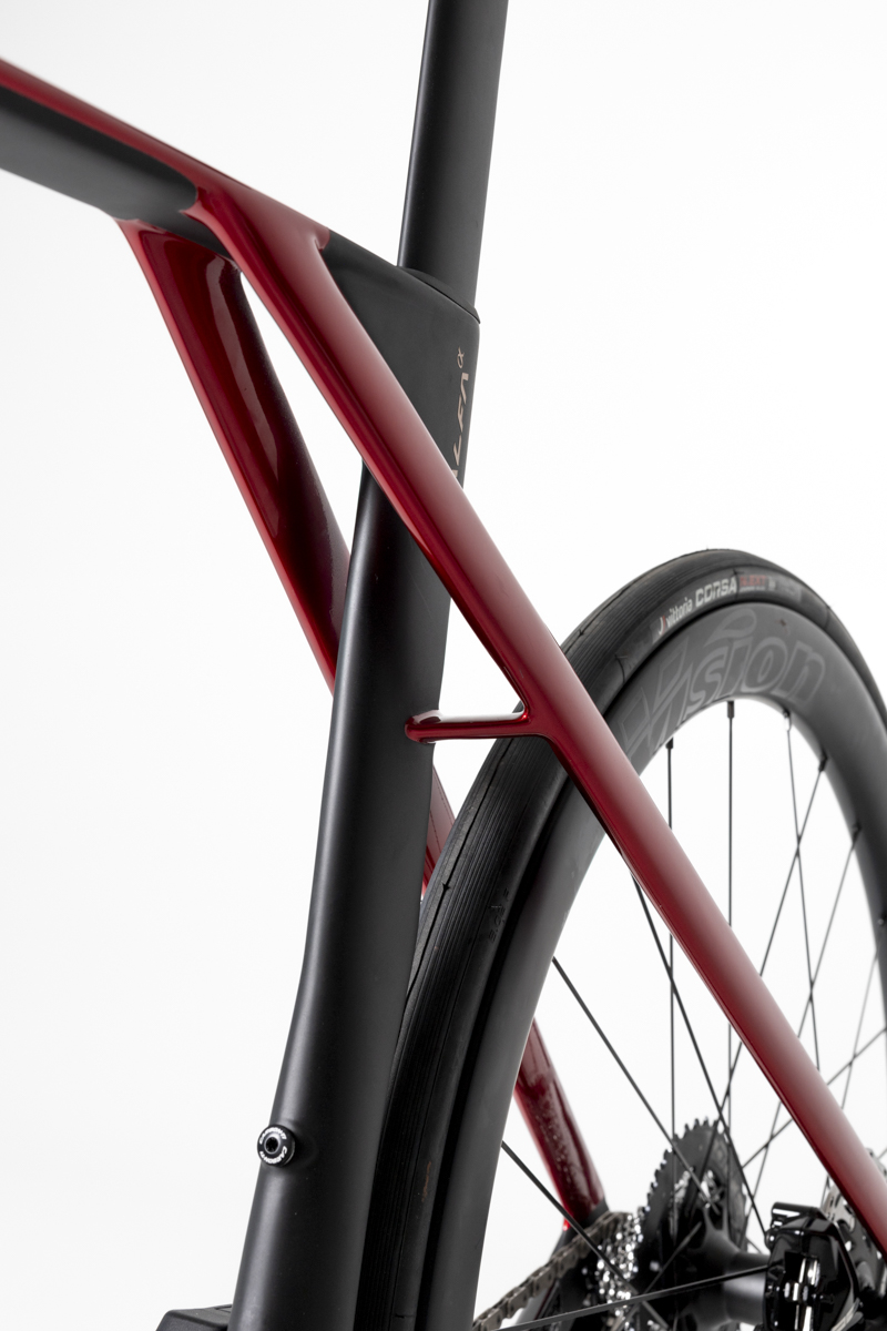 La tubazione PAT10 nella zona dello snodo sella incontra quelle che Titici ha chiamato tecnologie DAC (Double Air Channels) e AFT (Aero Flap Technology). Il risultato è una struttura che ricorda vagamente quella della Trek Madone, con la differenza sostanziale che il tubo sella non è a sbalzo.