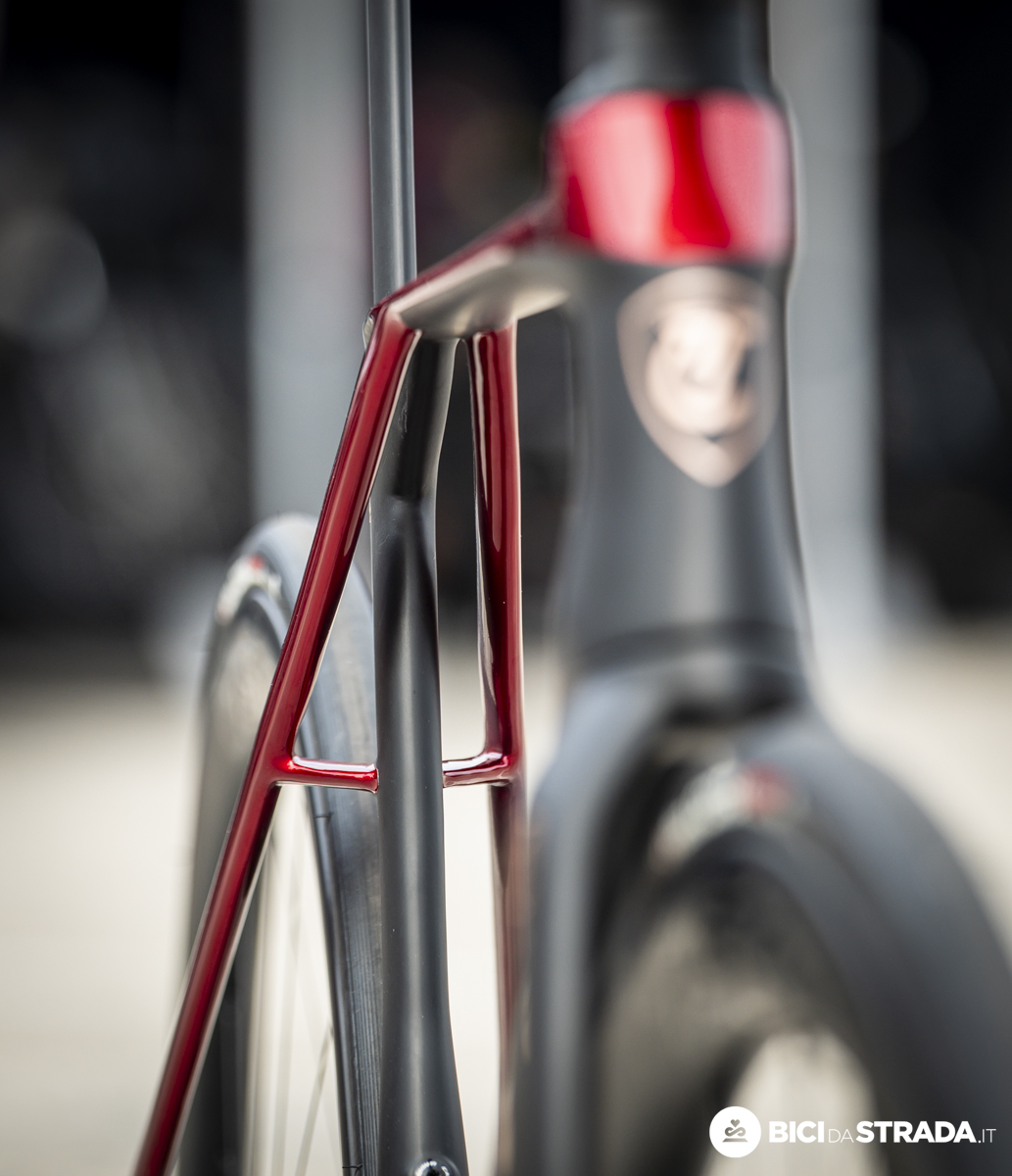 Una bici che secondo la dichiarazione d’intenti dell’azienda artigianale italiana è stata progettata seguendo un triplice approccio: prestazioni aerodinamiche uniche, grande qualità di guida, design caratterizzato da forme fluide.