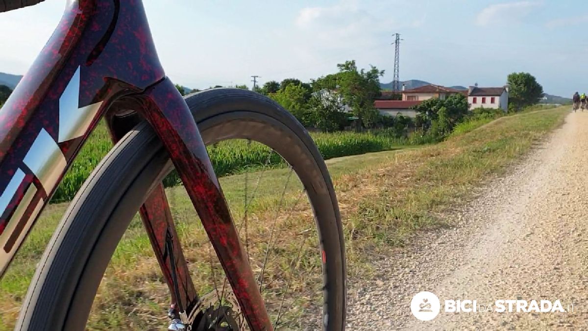 Sul percorso gravel di circa 40 km con alcuni tratti sconnessi, sia in salita che in discesa, ho apprezzato molto il sistema ruote-copertone che risulta molto più adatto per questo tipo di terreno.