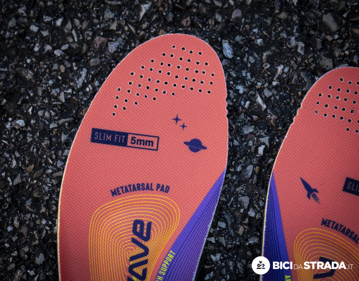 Inoltre, ogni paio di Veloce Extreme è fornito di serie con due coppie di solette ergonomiche per una calzata ancora più precisa e personalizzabile, poiché una ha spessore di 5 mm (slim fit) e una di 3 mm (regular fit).