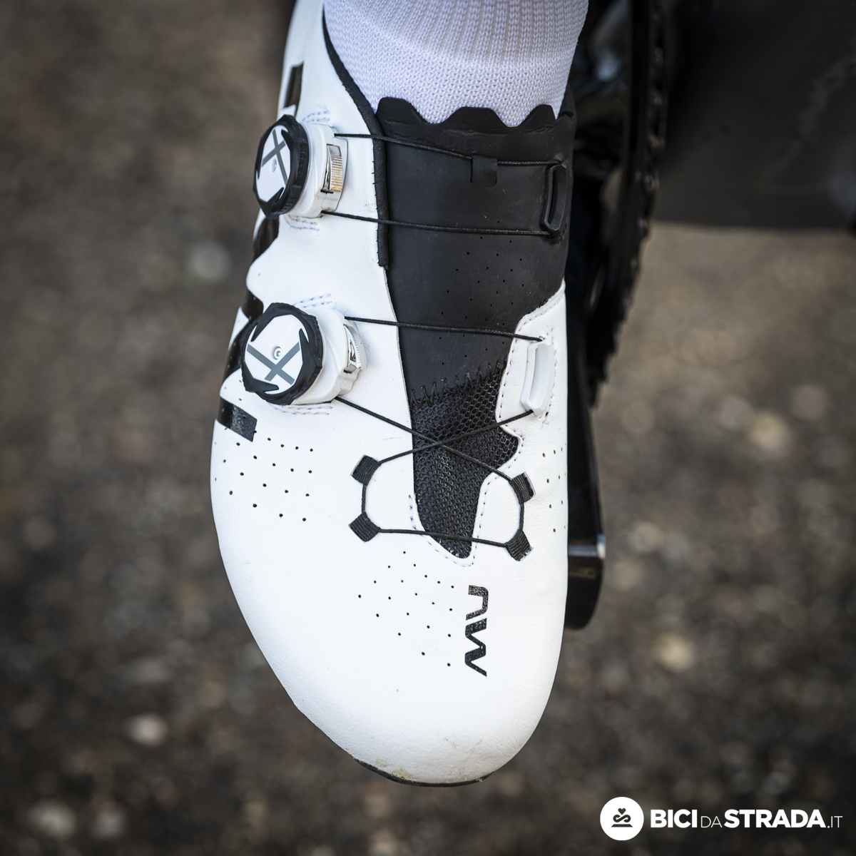 Il sistema di chiusura è l’ormai collaudato X-Dial SLW3 brevettato da Northwave, che grazie ai due rotori permette un serraggio diverso tra collo e avampiede. Rispetto al passato è stato leggermente modificato il passaggio dei cavi che a nostro avviso permette una migliore distribuzione delle pressioni.
