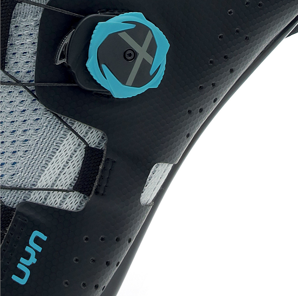 Il complesso sistema multi-frame della tomaia UYN è regolato dal sistema di chiusura Micro Tune, composto da un singolo rotore per il rapido serraggio della scarpa e dalla tecnologia Click-to-fit, che attraverso un unico pulsante permette la completa apertura.