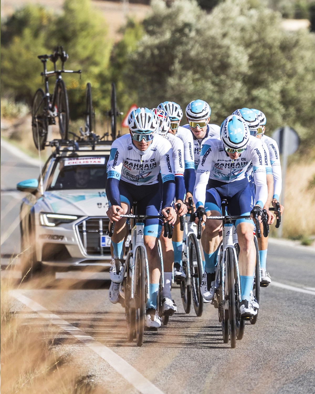 Si tratta di un modello dedicato alle prove contro il tempo che verrà sfoggiato oggi per la prima volta dagli atleti del team Bahrain Victorious in occasione della cronometro individuale d'apertura della Tirreno-Adriatico. Qui sotto una foto tratta dal profilo Instagram del team: