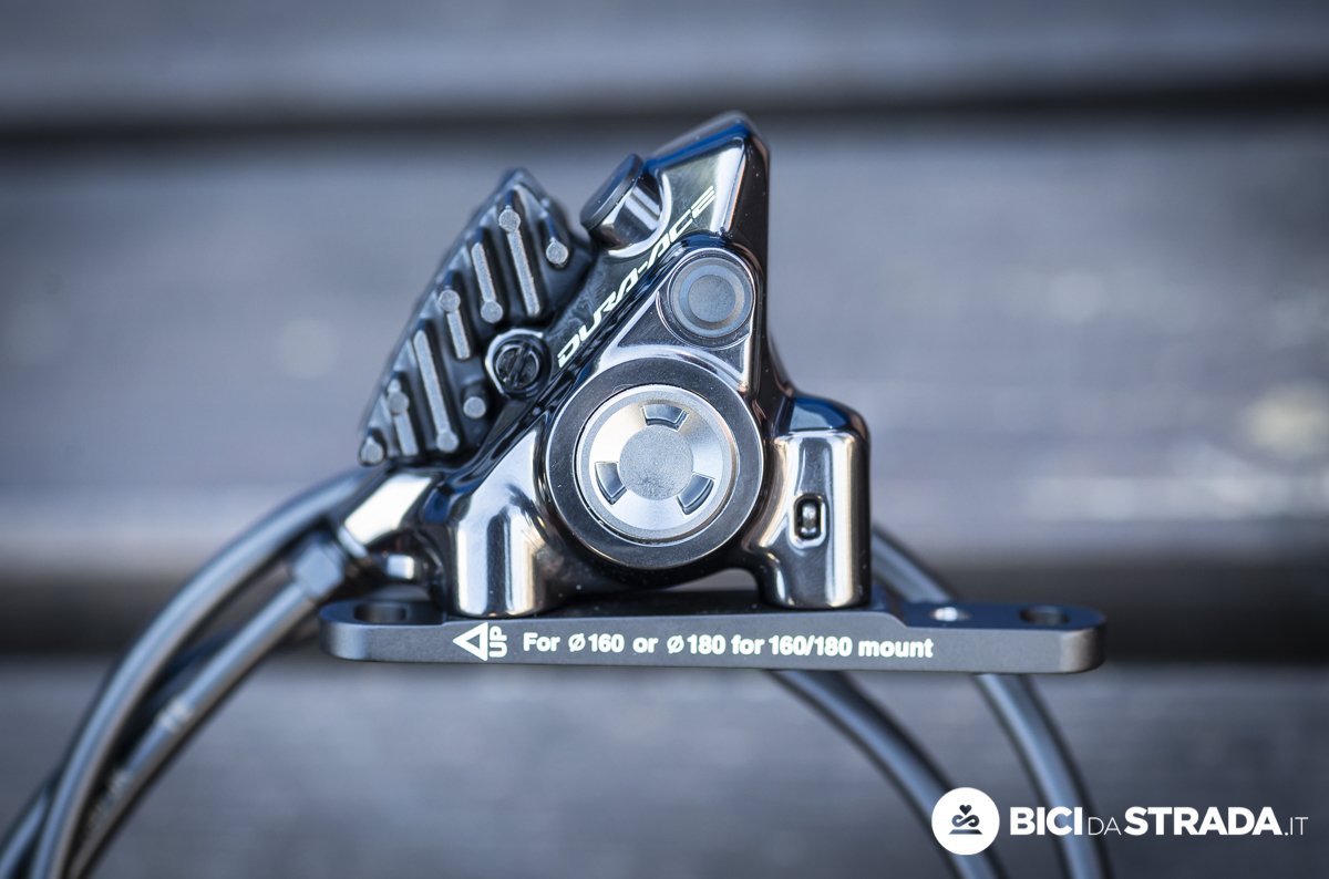 Il nuovo Shimano Dura Ace è dotato di pinze con uno spazio maggiorato tra le pastiglie, di un nuovo disco e del sistema Servo Wave (utilizzato anche in mtb e sul gruppo gravel GRX). Questi upgrade sono stati introdotti con l’obiettivo di aumentare la potenza e la modulabilità della frenata, ma soprattutto di ridurre rumorosità e sfregamento durante la marcia.