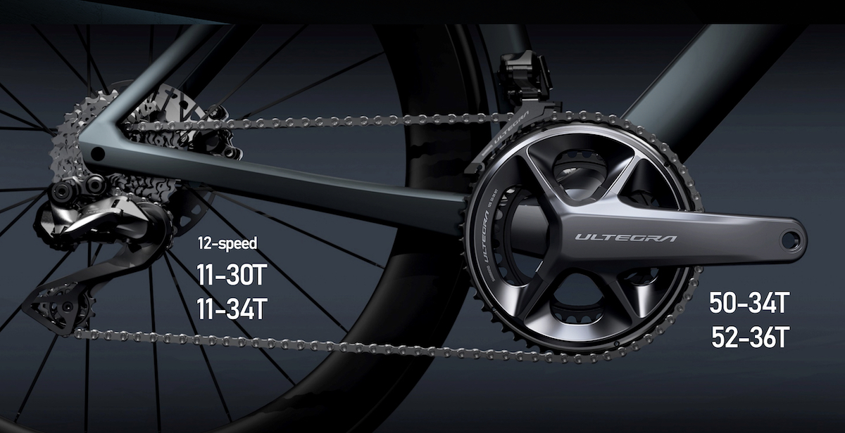 Anche il nuovo Shimano Ultegra R8100, dunque, prevede una trasmissione a 12 velocità, è solo elettronico, ma disponibile sia per freno a disco che per freno tradizionale.