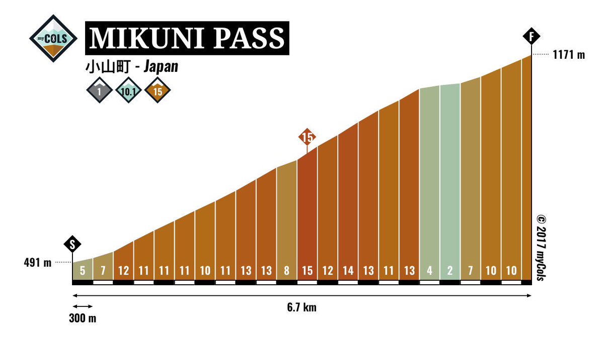 Superata la discesa che riporta per la seconda volta a Gotemba si affronterà un tratto nervoso, con primo passaggio sul traguardo, che dopo 201 km condurrà al Mikuni Pass (6.7 km al 10.6% e punte al 15%), che a detta di Cassani: "farà molto male anche se dalla vetta mancheranno ancora 33 km”.