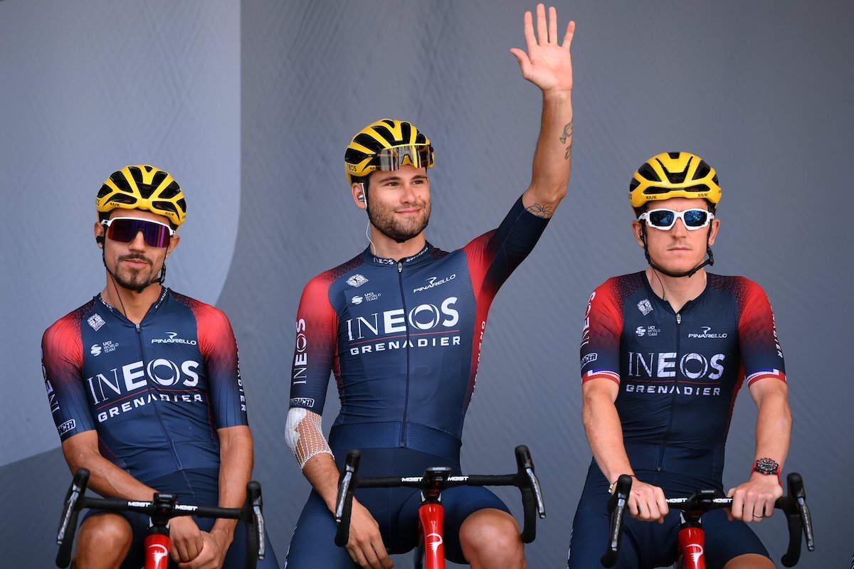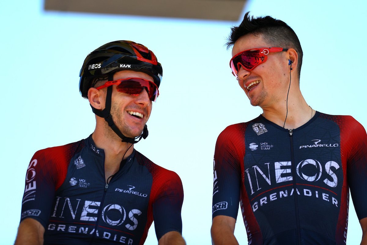 In questa foto Daniel Martinez e Filippo Ganna adottano un body tradizionale a differenza di Thomas. Foto: @INEOSGrenadiers