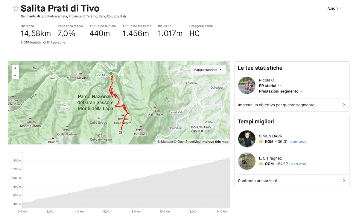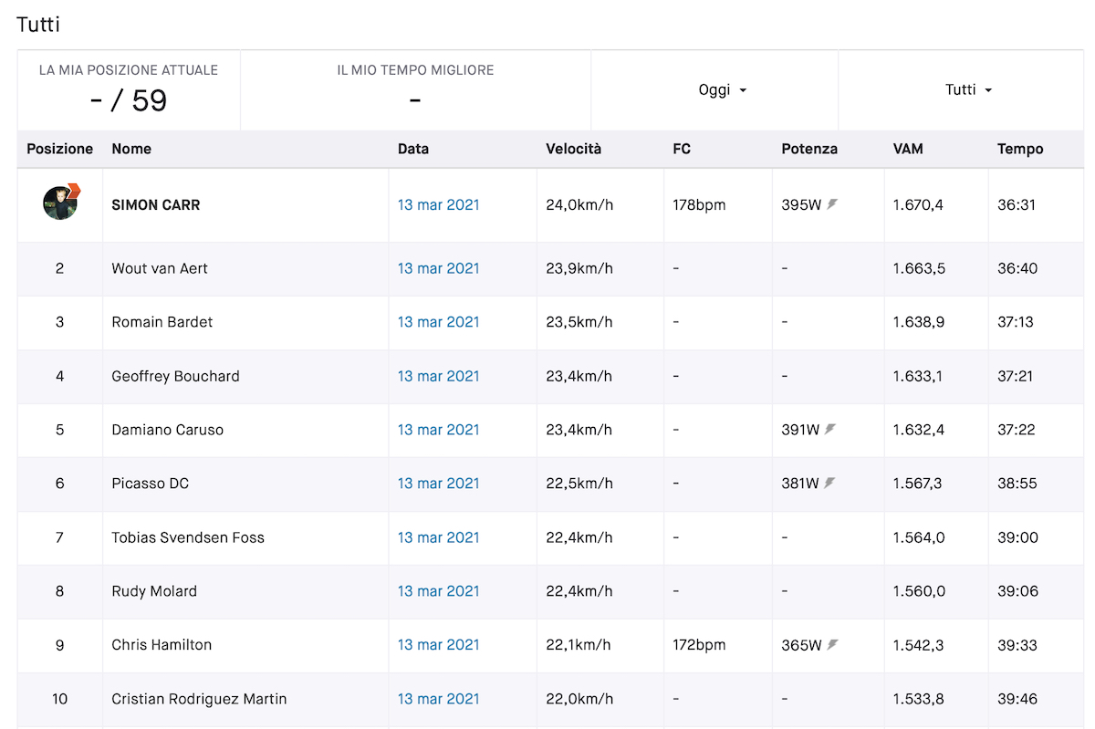 Si tratta di un risultato di valore assoluto, anche in considerazione del fatto che la pendenza media della salita è del 7%, cioè non estrema.