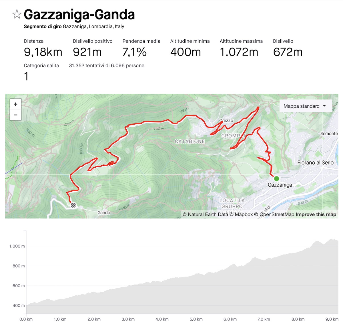 La potenza stimata ci restituisce un valore di circa 6,2 watt/kg, con una VAM di 1.777 m/h, un dato eccezionale in relazione al tempo di scalata e alla pendenza del 7,1% (cioè non ripidissima).