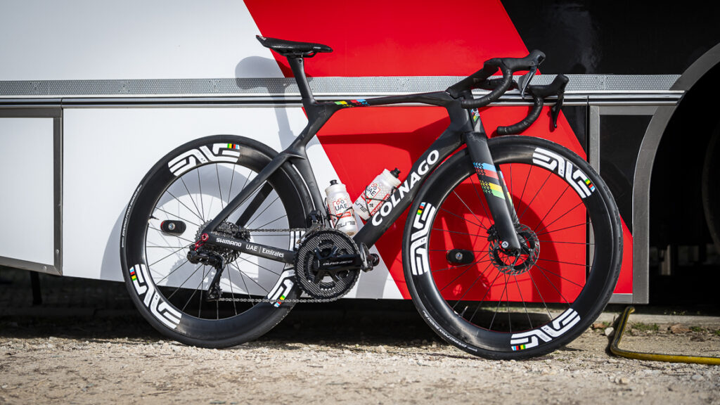 Pogačar alla Strade Bianche 2026: sulla sua Colnago manubrio più lungo e nuove ruote