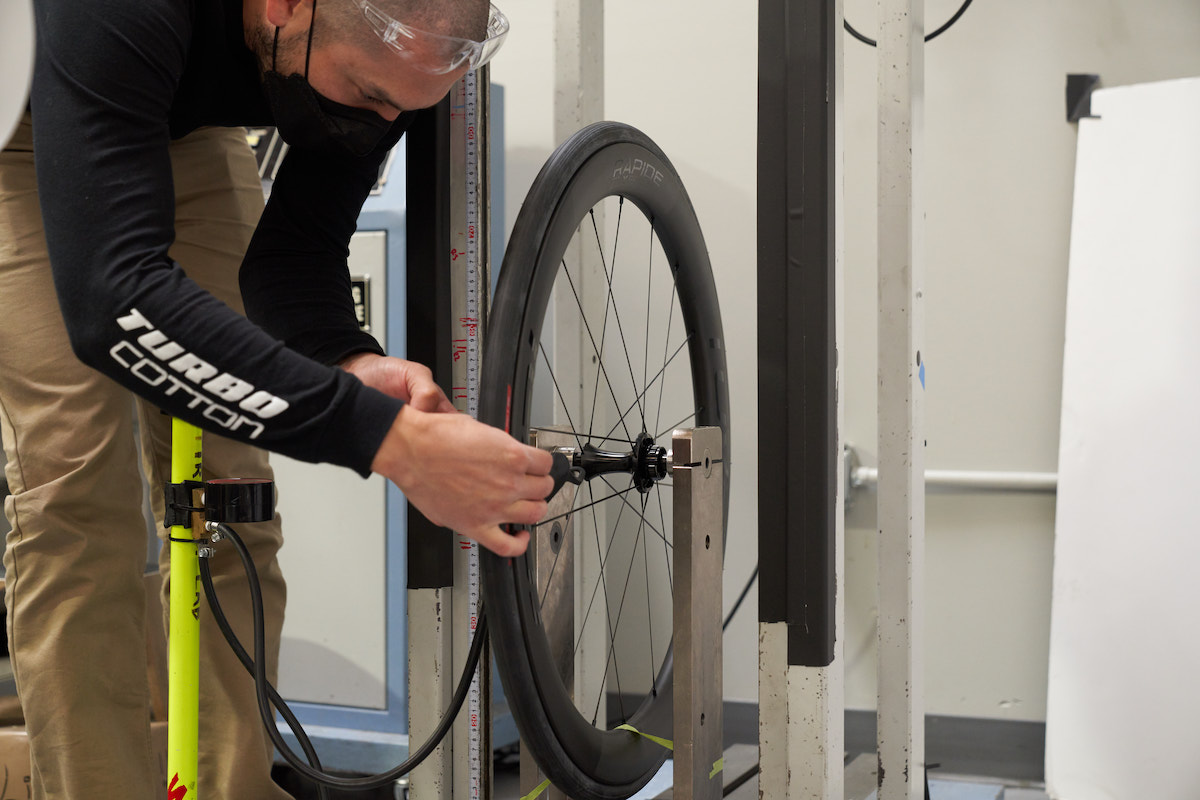 Per garantire la validità delle prove in laboratorio e la relativa efficacia nel mondo reale il focus si sposta dall'urto subito dal ciclista all'impatto assorbito dalla ruota. Roval elabora così nuovi test di caduta che alzano l'asticella e raddoppiano la soglia utile per superare le verifiche.
