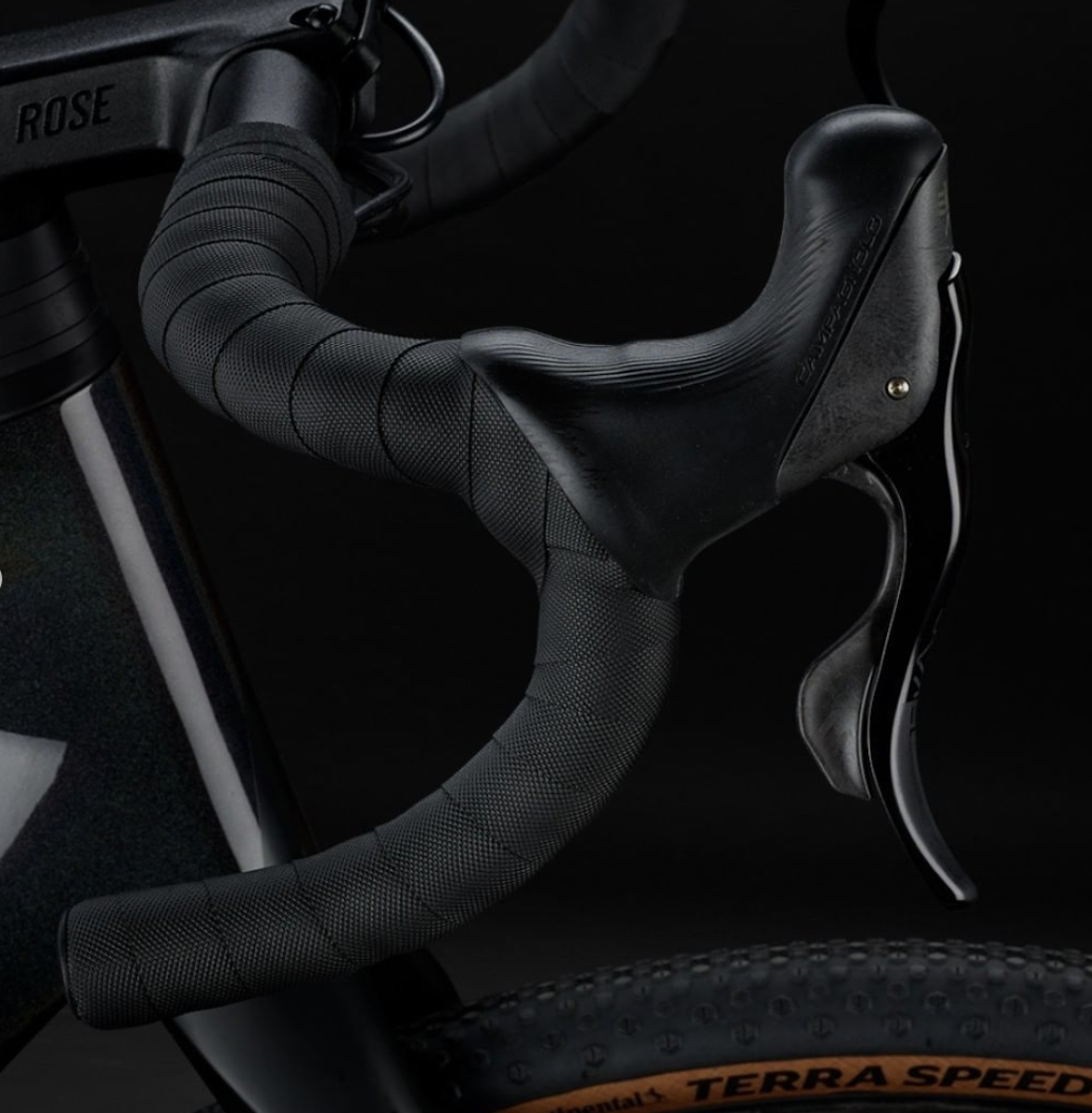 A completare l’allestimento: l’attacco manubrio Rose Square che consente il passaggio interno dei cavi, il manubrio Ritchey Butano Comp, la sella Selle Italia Flite Flow e gli pneumatici Continental Terra Speed da 40 mm.