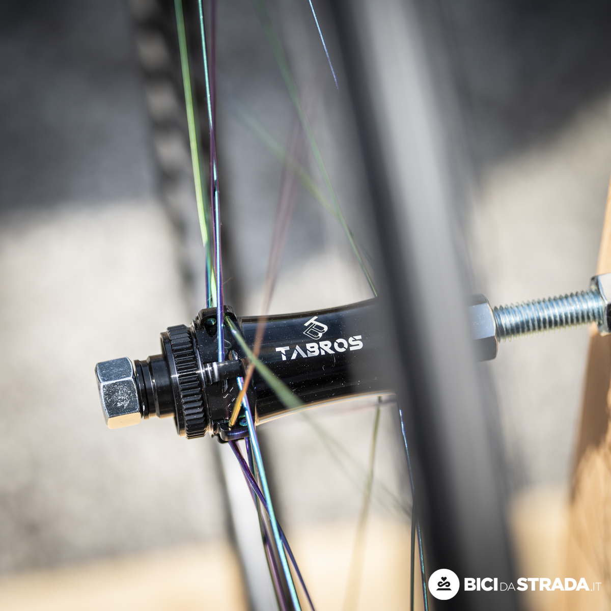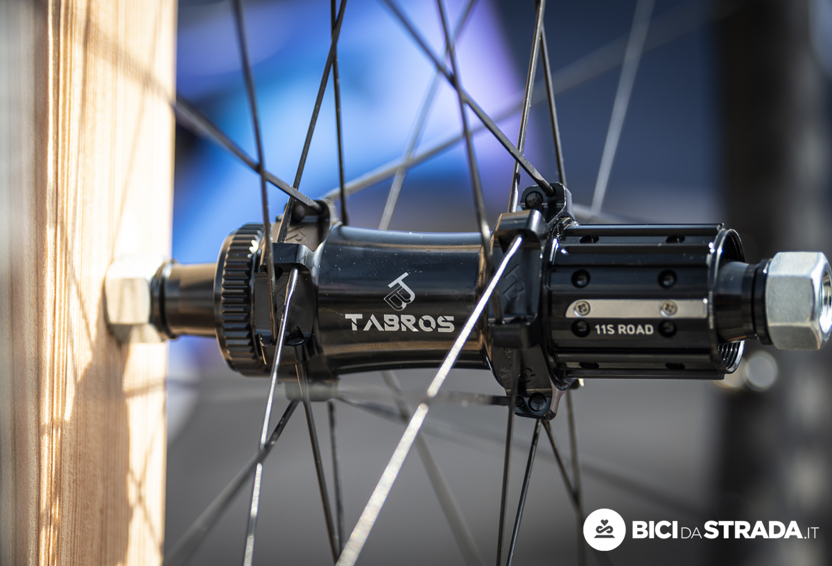 Le ruote Tabros PR sono dotate di mozzi in Ergal ricavati dal pieno, con cuscinetti ceramici e attacco disco Center Lock, e montano 24 raggi sia all’anteriore che al posteriore.