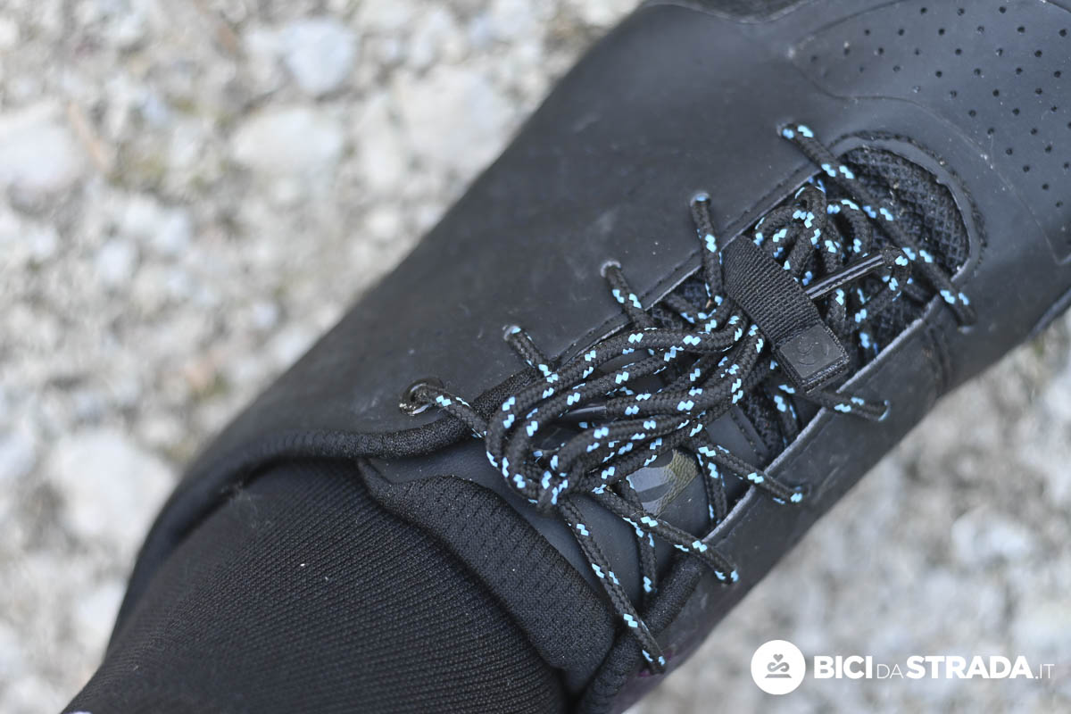 La regolazione è comoda e veloce e una volta allacciate le scarpe non ho mai avuto bisogno di sistemarle. Generalmente con altri sistemi di chiusura ho bisogno di qualche uscita per trovare il giusto fit, ma il ritorno ai lacci in questo caso è stato sorprendentemente semplice.